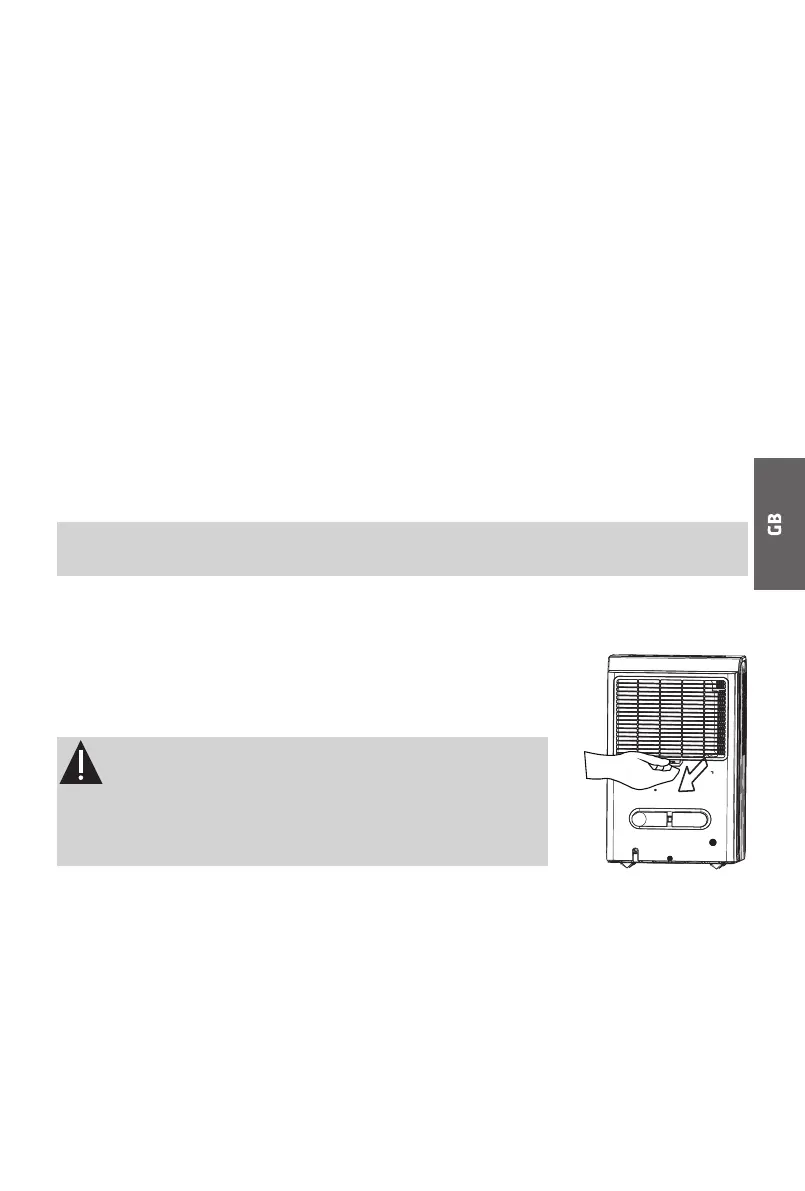 must be in place and securely seated for the dehumidifier to operate.