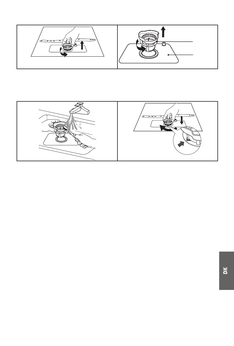 Sprøjtearmen skal regelmæssigt rengøres for kemikalier mod hårdt vand,