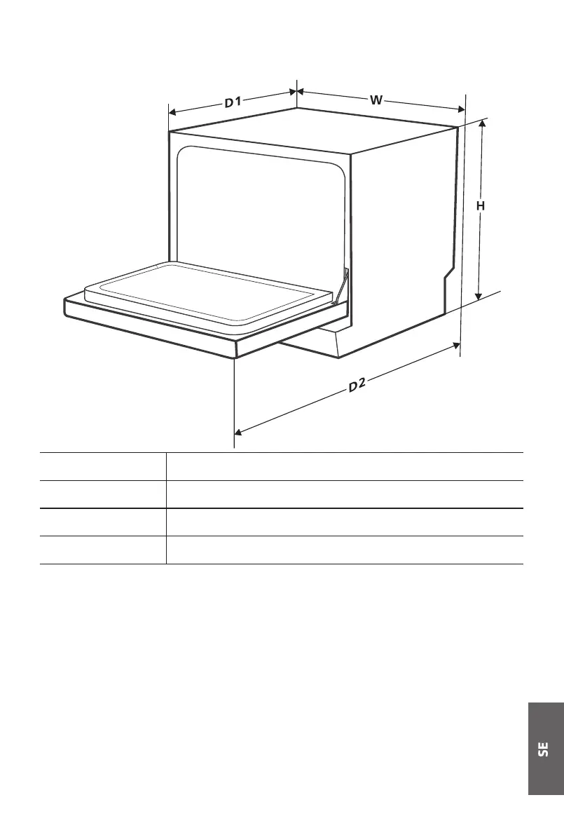 Djup (D2) 812 mm (med luckan öppen i 90°)
