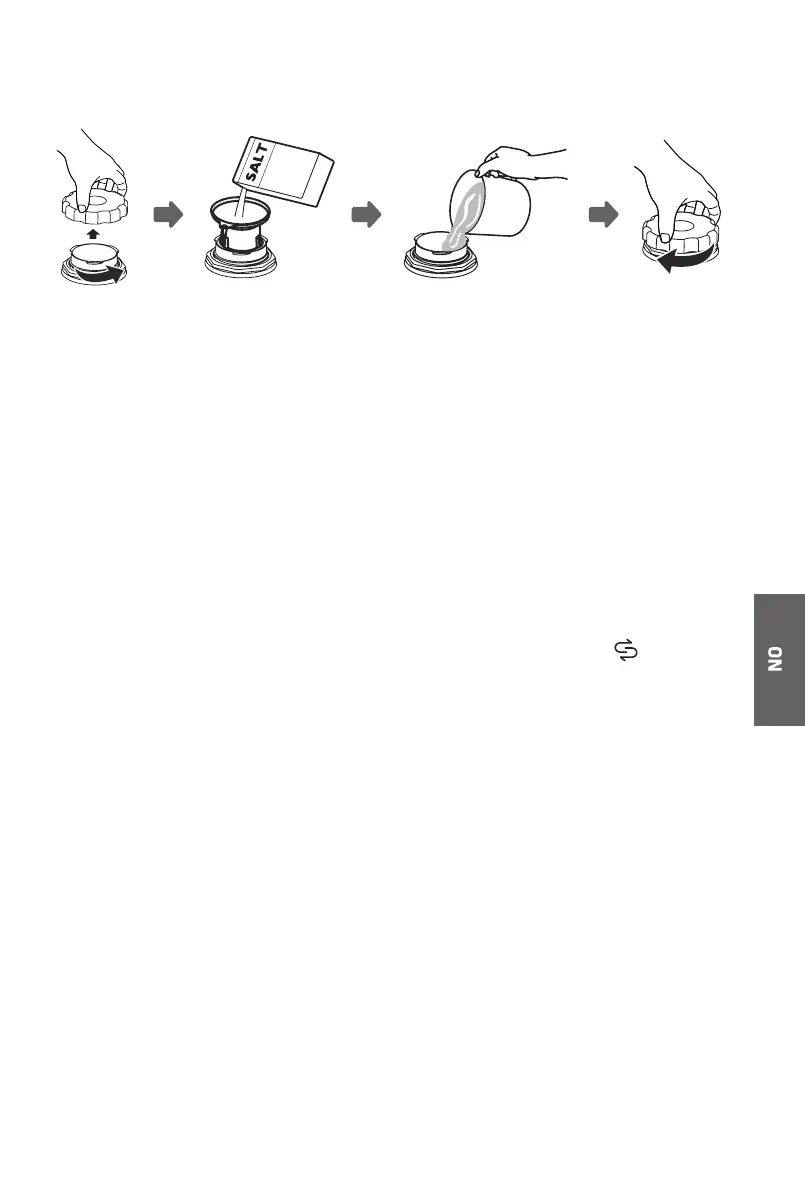 5. Saltvarslingslampen slutter å blinke når saltbeholderen er fylt med salt.