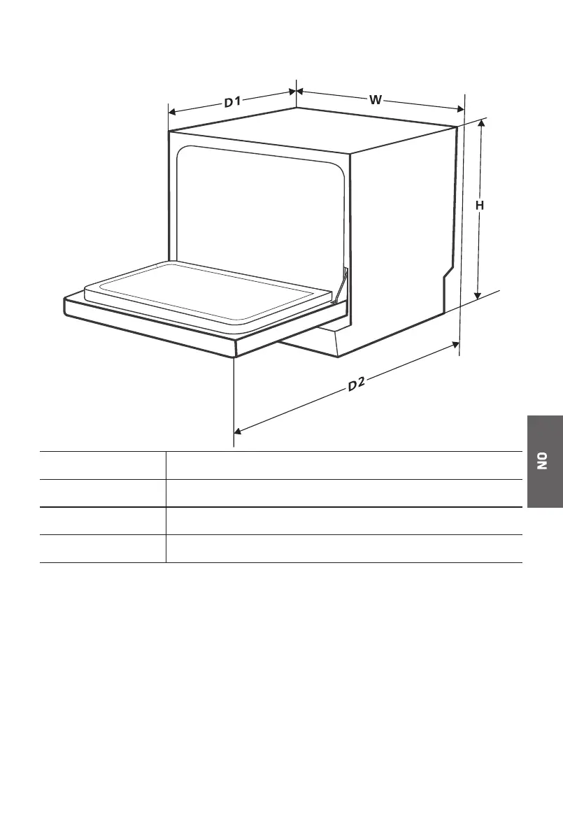 Dybde (D2) 812mm (med døren åpnet 90°)