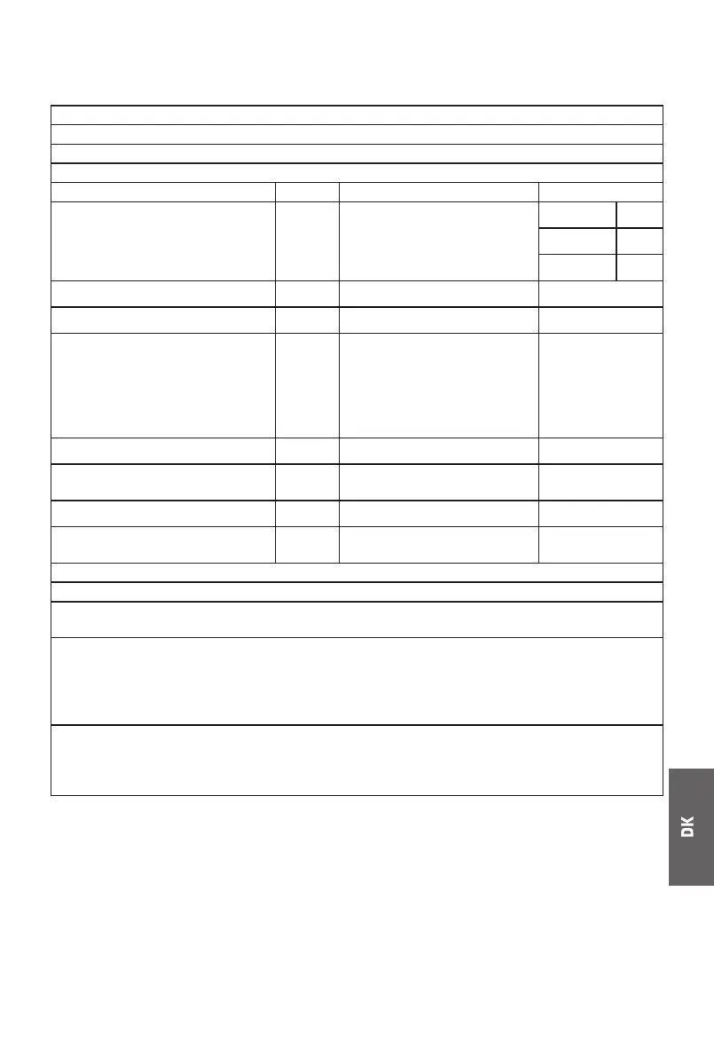 Parameter Værdi Parameter Værdi