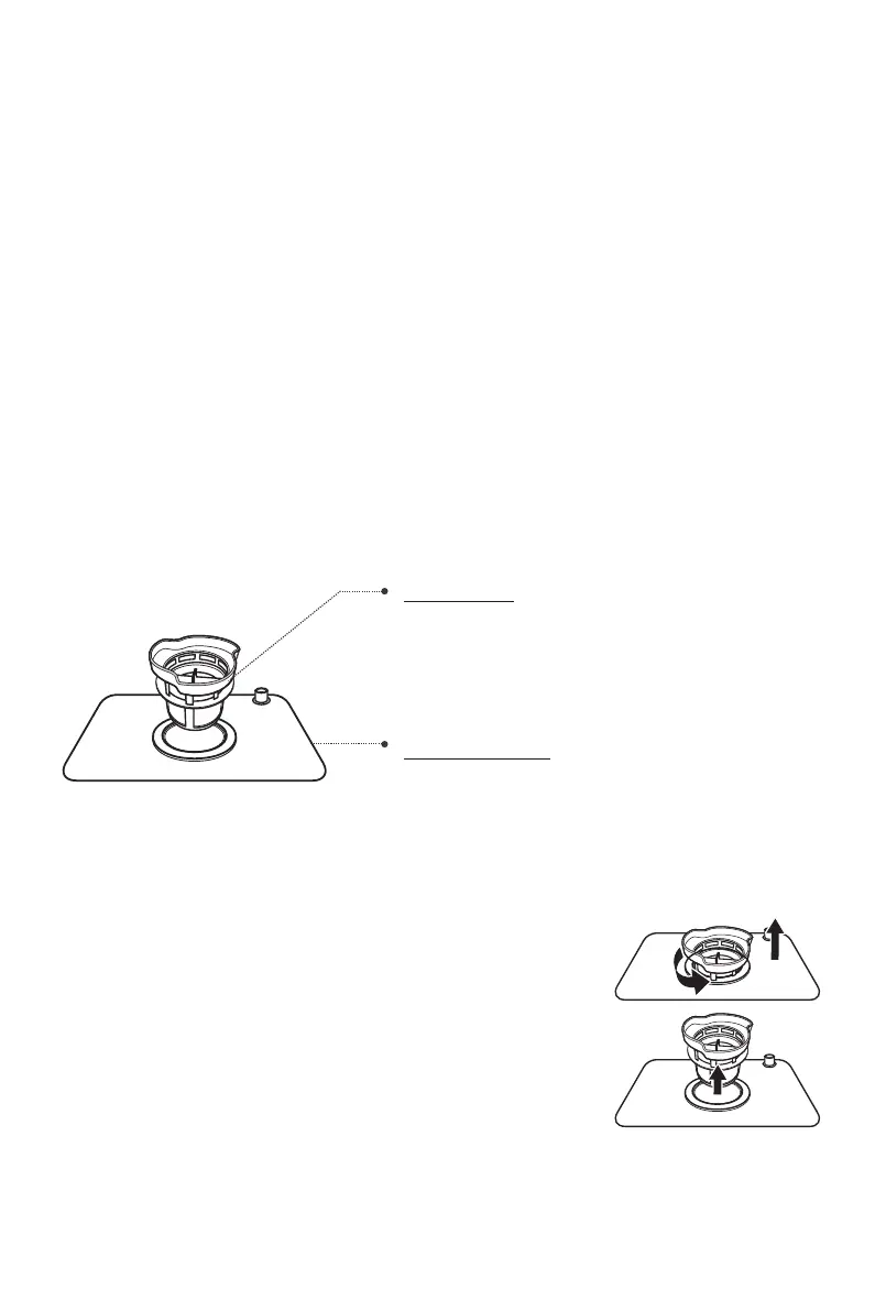 behållaren under rinnande vatten. För att ta bort filterenheten, ta i
