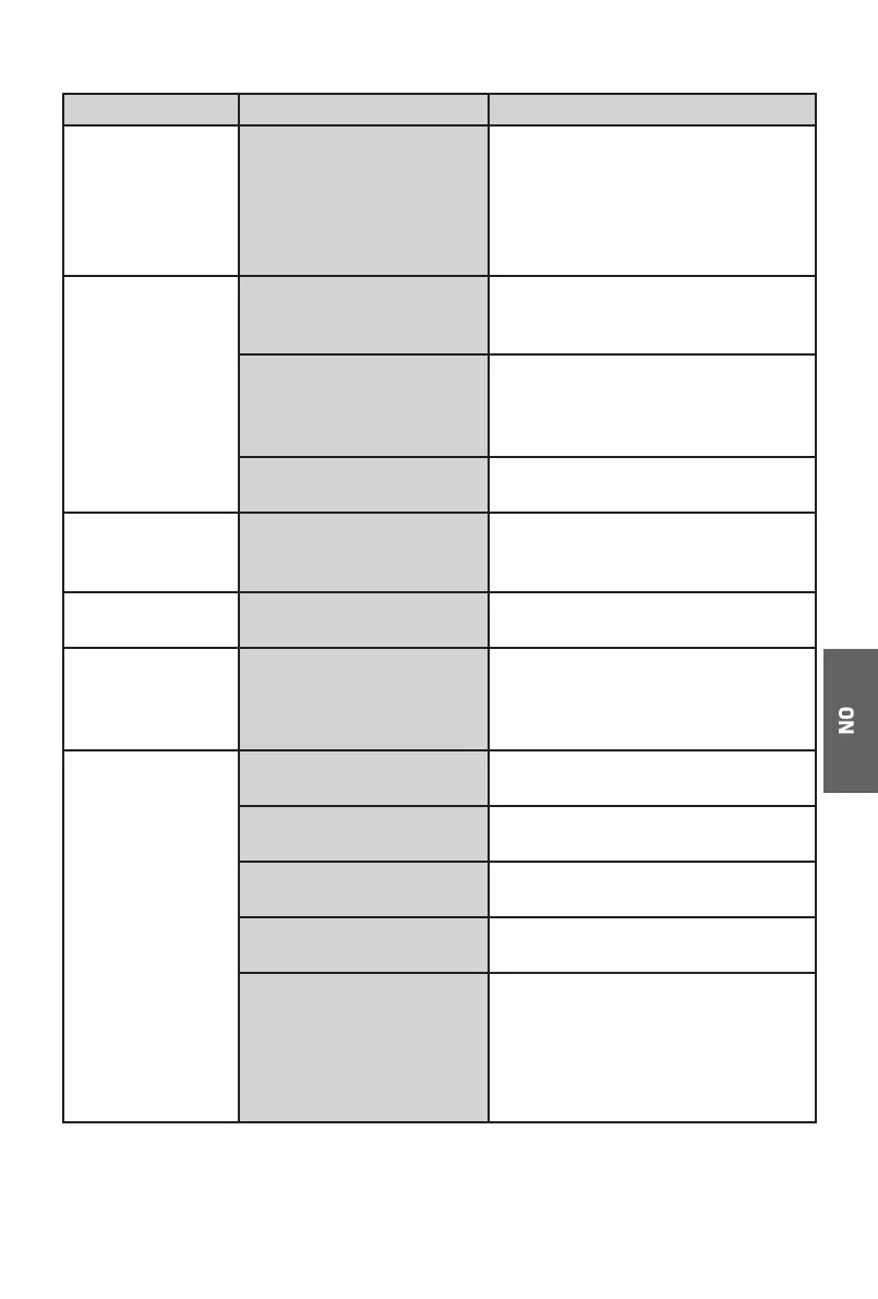 Problem Mulig årsak Ting du alltid må gjøre:
