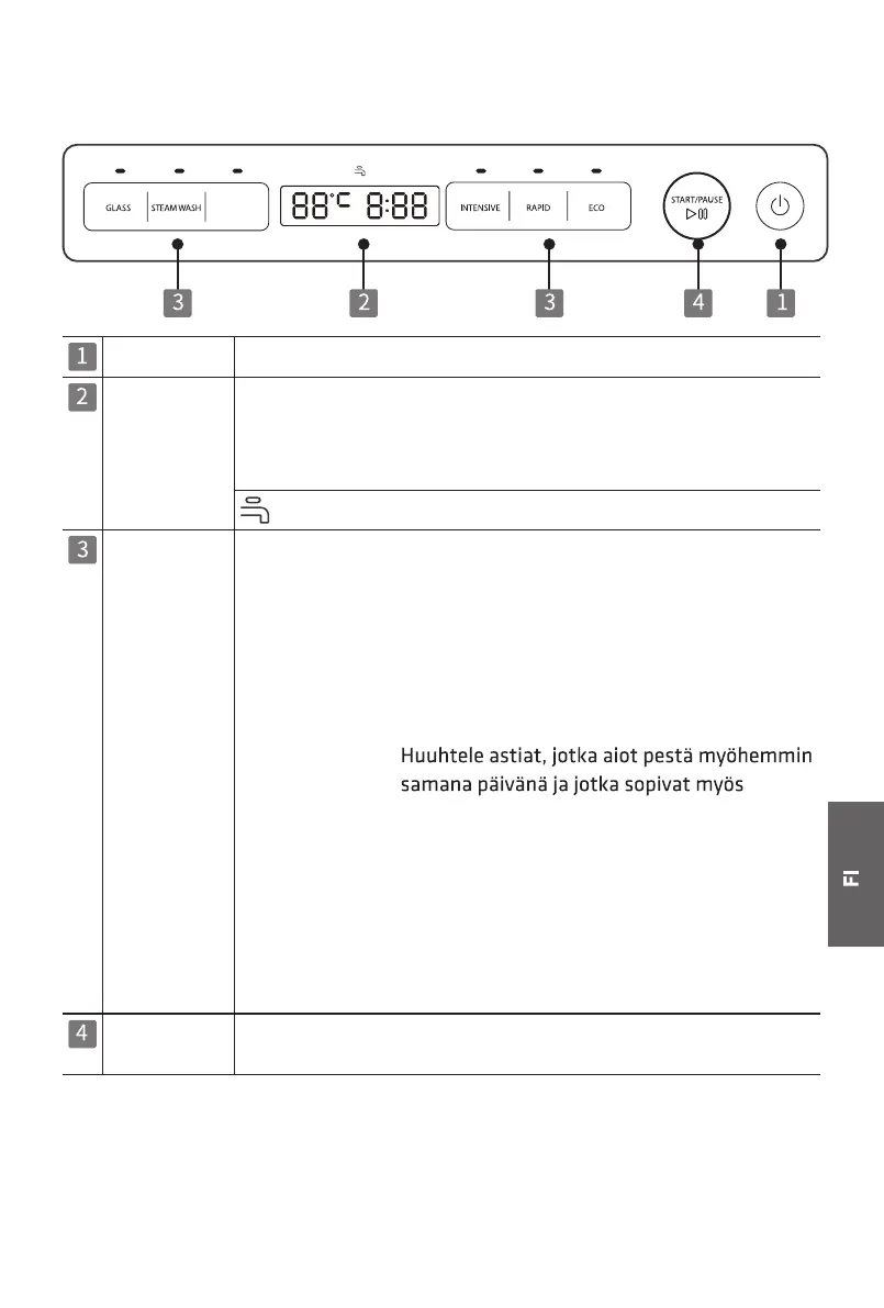 Näyttö Kun ohjelma on valittu, näkyviin tulee korkein lämpötila ja