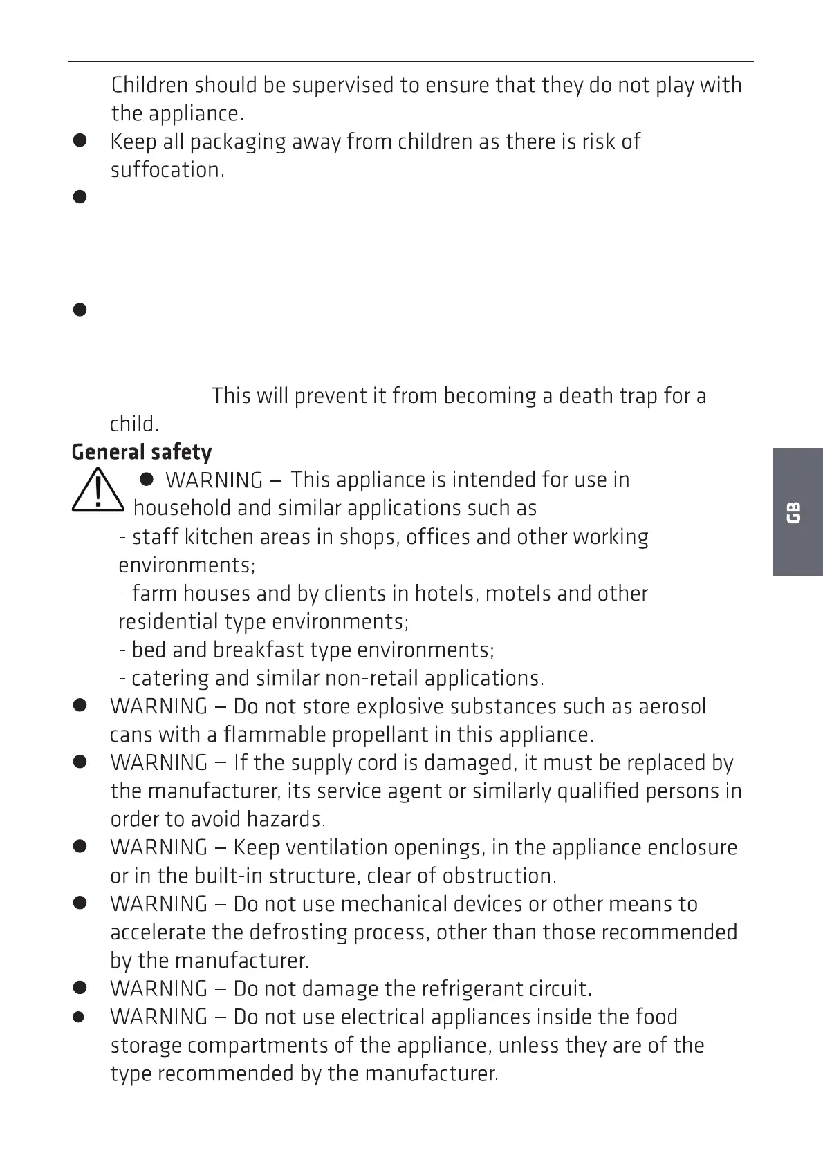 an electric shock or from closing themselves inside the appliance.