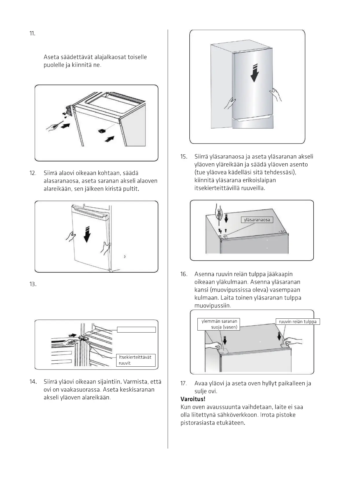 alaoven yläreikään, kiristä pultit.