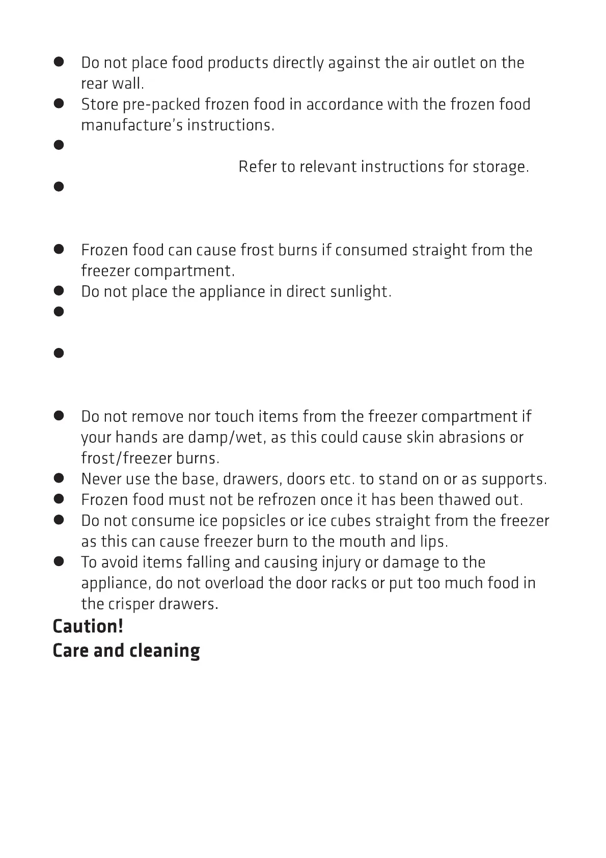 Do not place carbonated or fizzy drinks in the freezer compartment