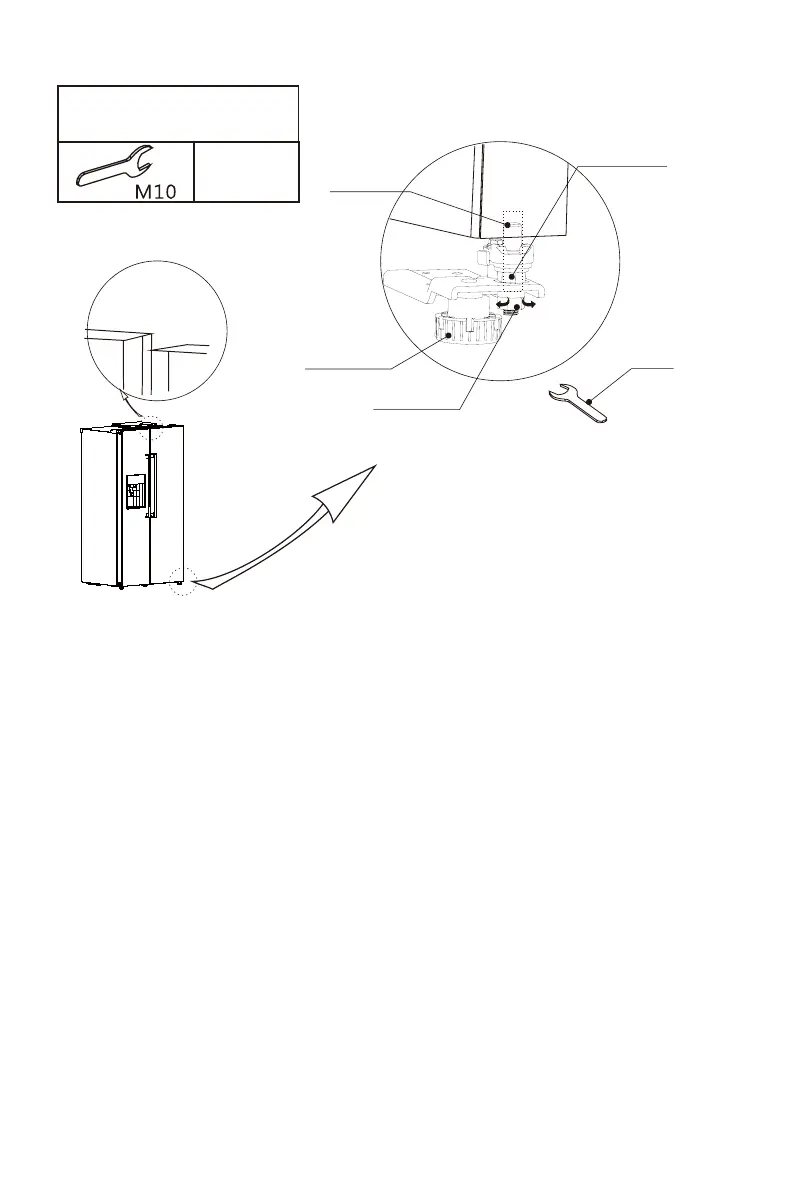 Open the door, use a wrench to rotate the adjusting nut clockwise to lower