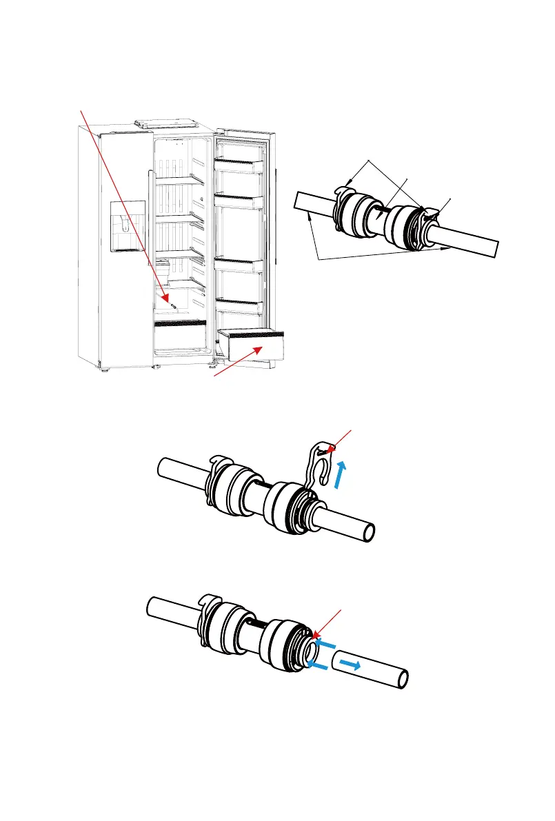 With one hand, press the collet in front of the water pipe joint in the
