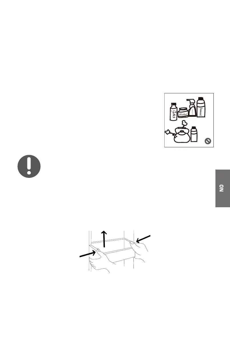 Rengjør flaskerammen, hyllene og skuffene med en myk klut fuktet