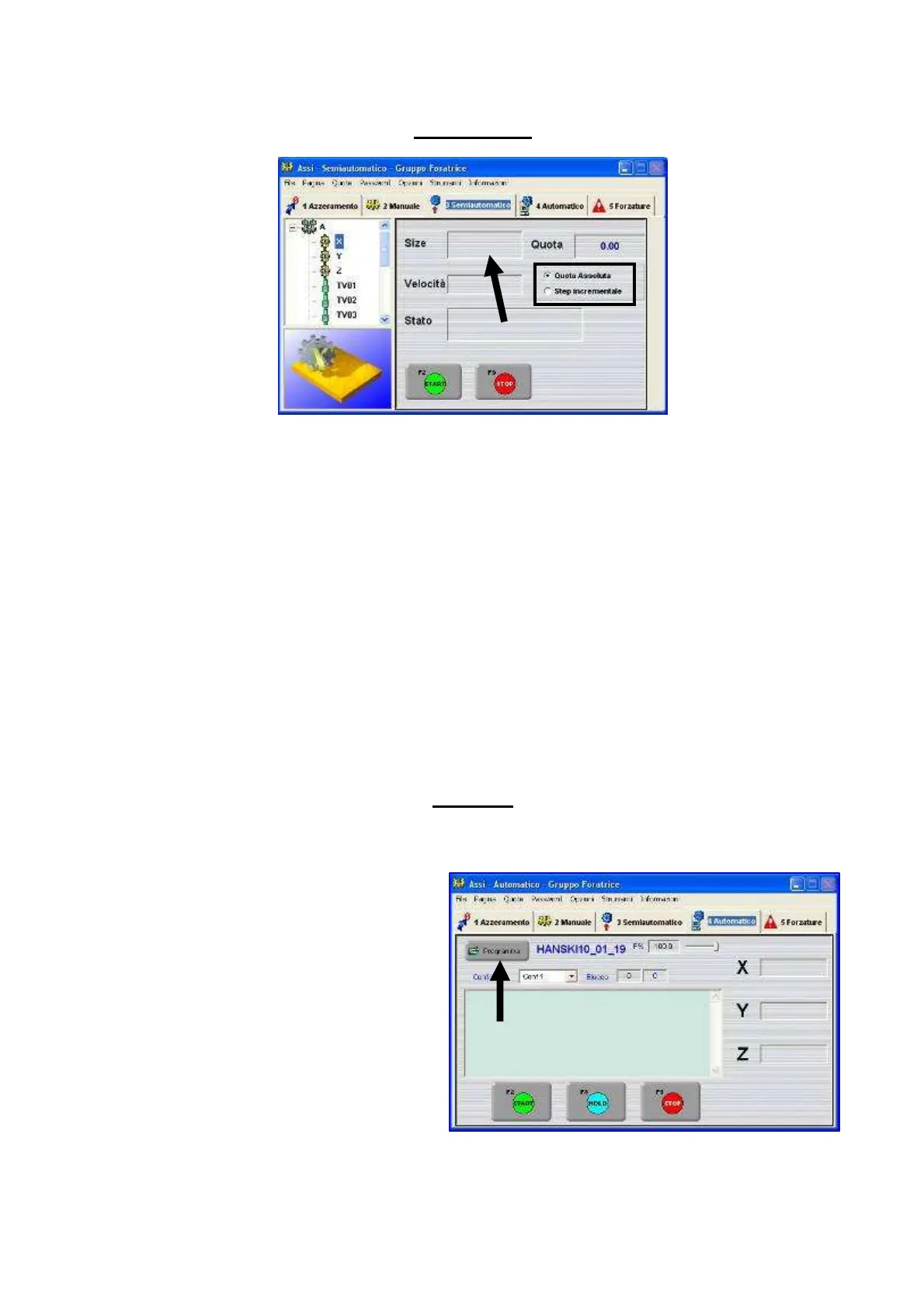 In this section it is possible to move the operating unit (TV01 reference) on the existing axes by