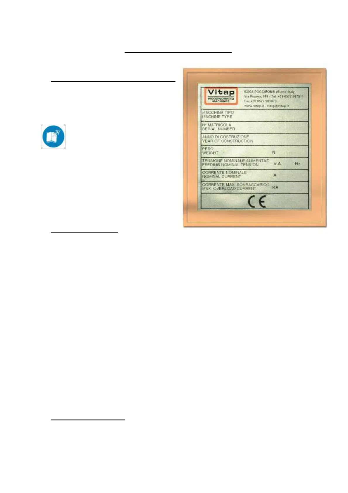 IEC 408). THE MANUFACTURER takes no responsibility in the case that the machine is not