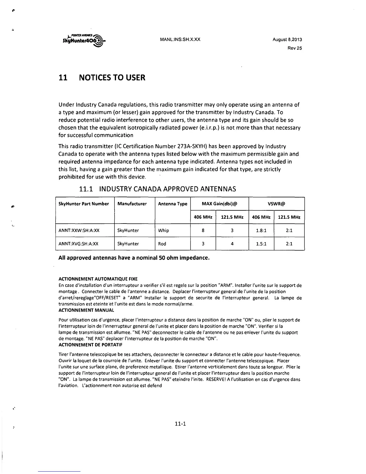 11.1 INDUSTRY CANADA APPROVED ANTENNAS