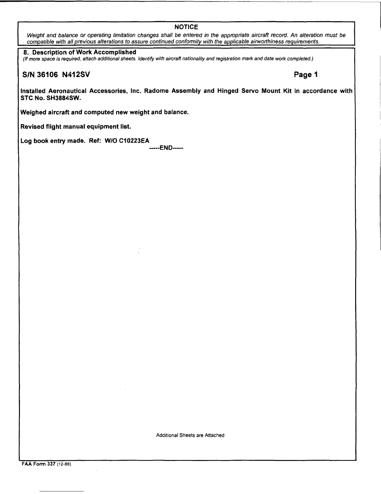 (If more space is required, attach additional sheets. Identify with aircraft nationality and registration mark and date work completed.)