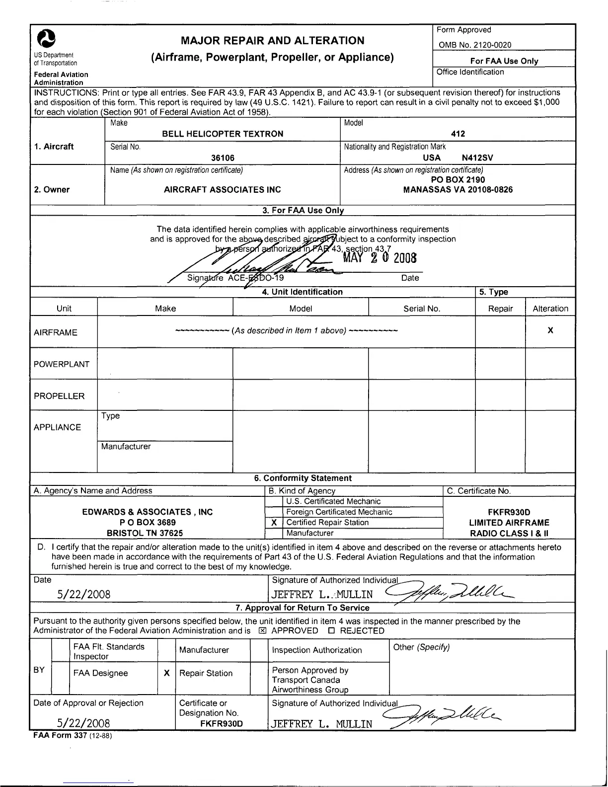 2. Owner AIRCRAFT ASSOCIATES INC MANASSAS VA 20108-0826