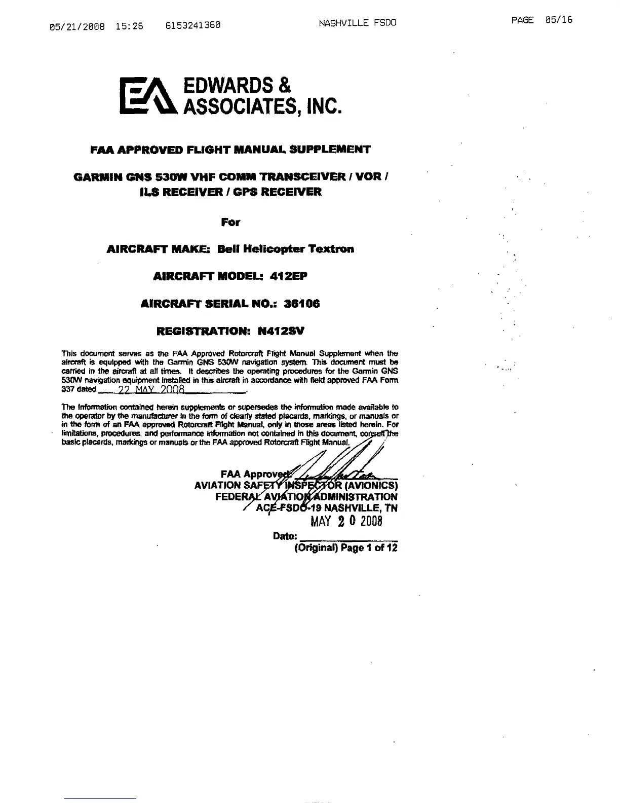 FAA APPROVED FLIGHT MANUAL SUPPLEMENT