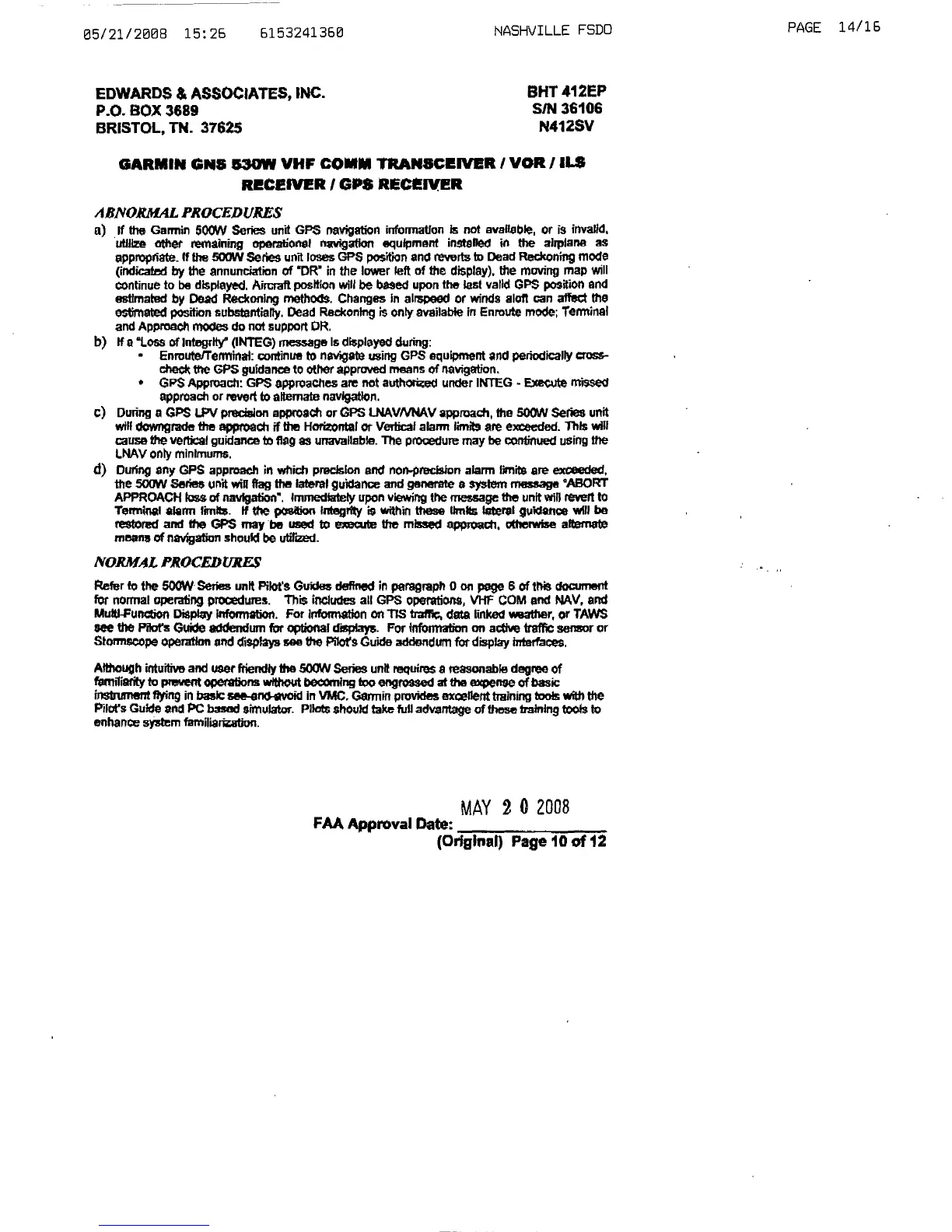 for normal operating procedures. This includes all GPS operation.s, VHF COM and NAV. and