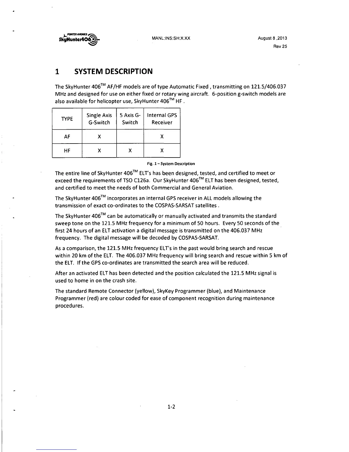 The SkyHunter 406™ AF/HF models are of type Automatic Fixed, transmitting on 121.5/406.037