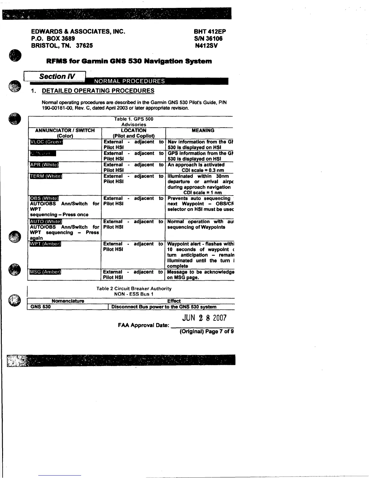 Normal operating procedures are described in the Garmin GNS 530 Pilot's Guide, PIN
