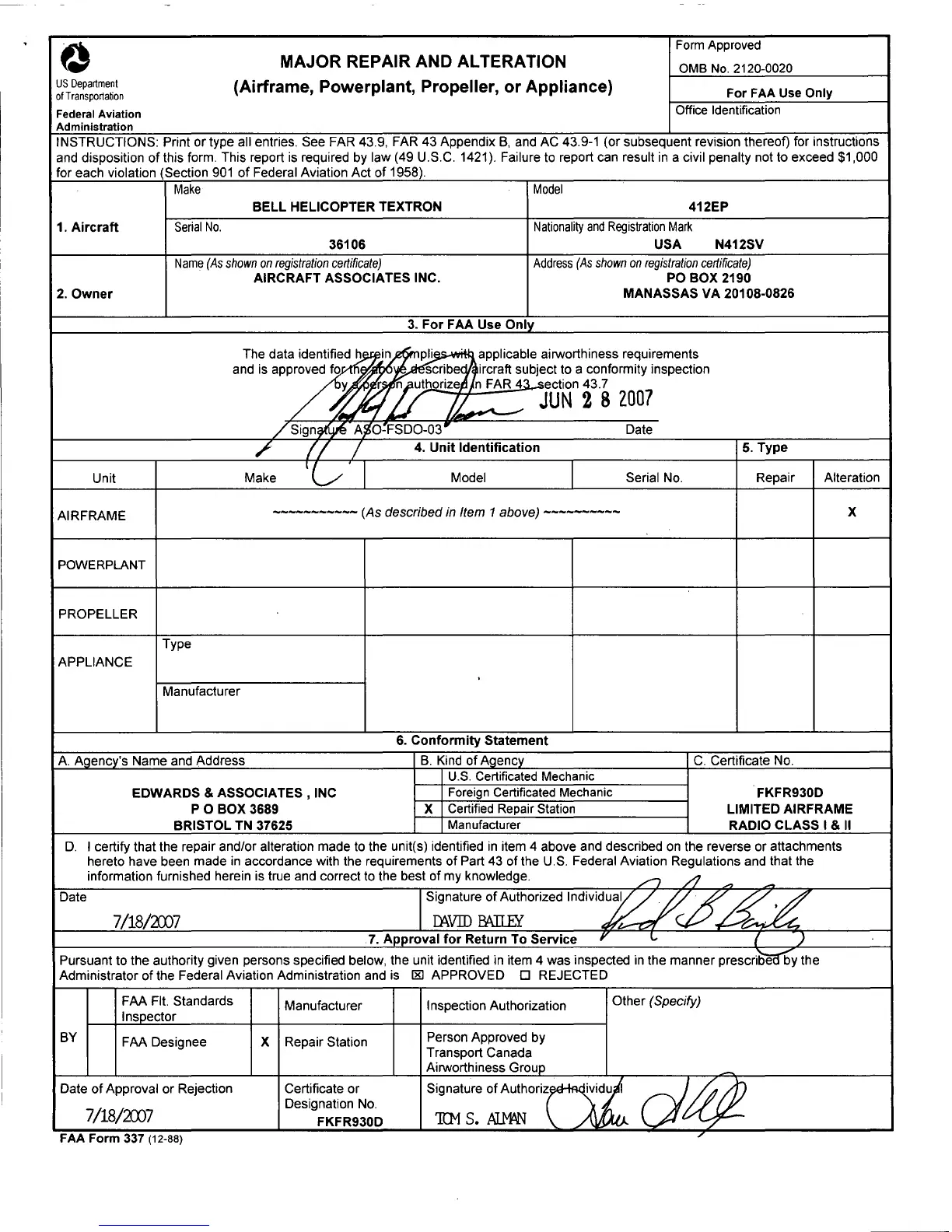 MAJOR REPAIR AND ALTERATION