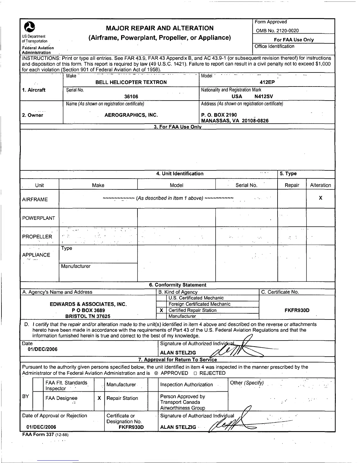 that the repair and/or alteration made to the unit(s) identified in item 4 above and described on the reverse or attachments