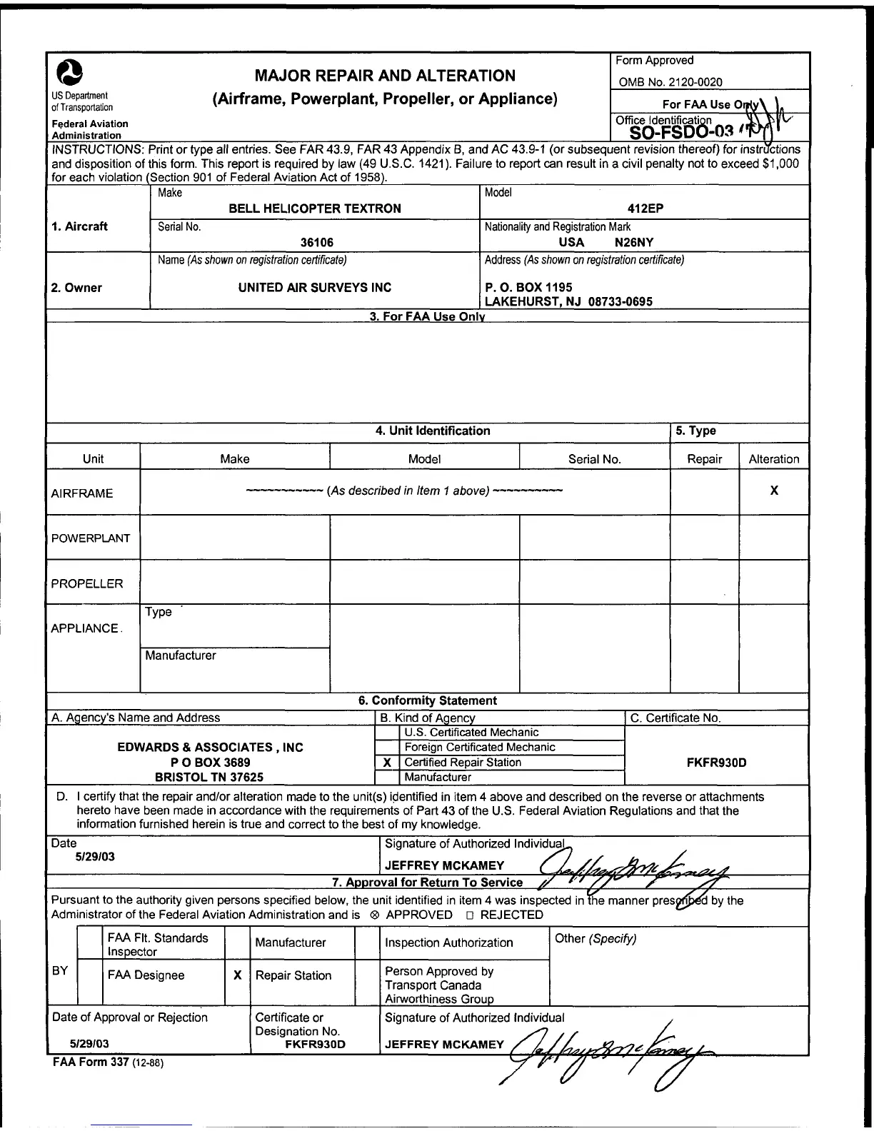 MAJOR REPAIR AND ALTERATION