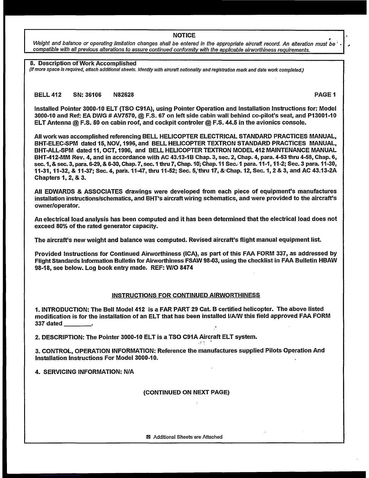 (If more space is required, attach additional sheets. Identify with aircraft nationality and registration mark and date work completed.)