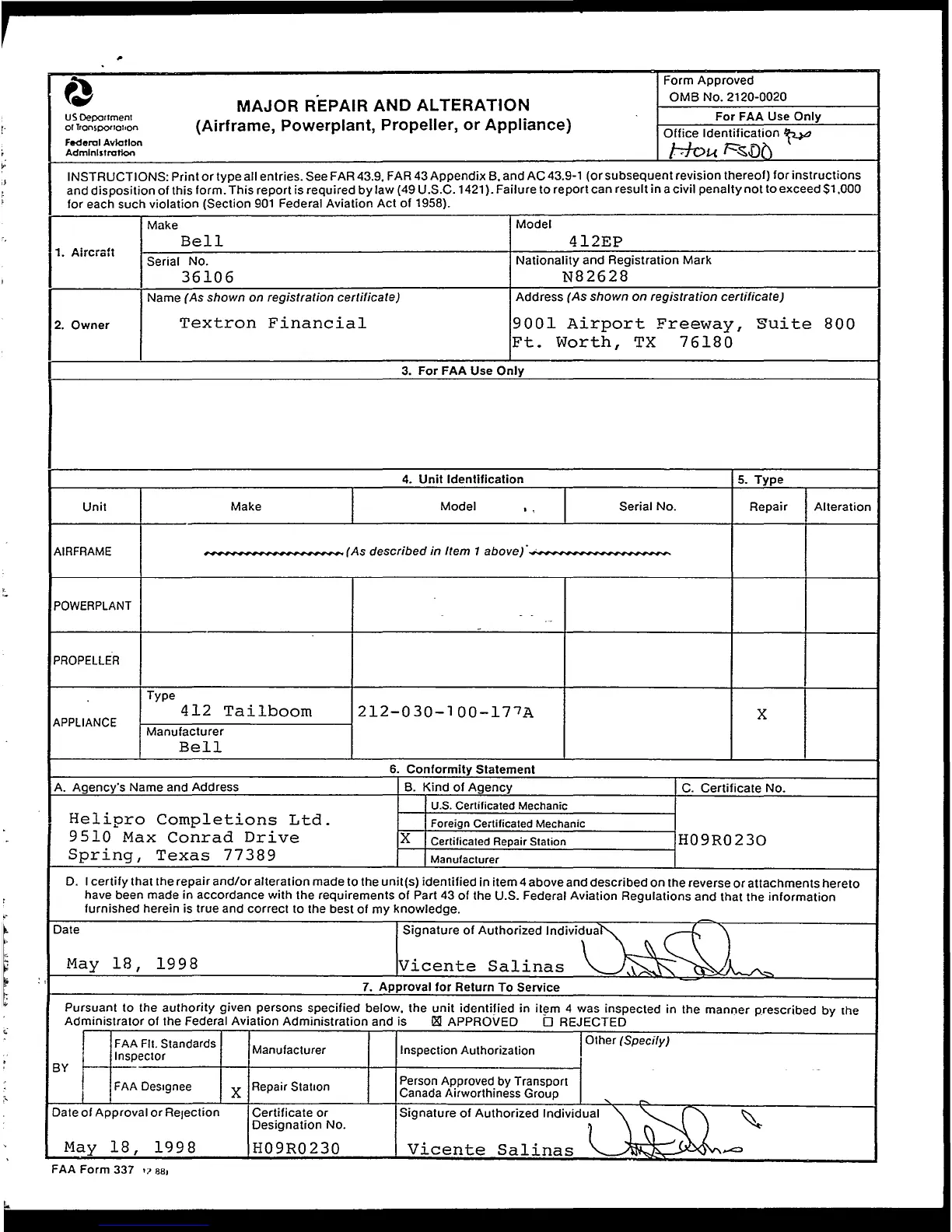 Date of Approval or Re1ection Certificate or
