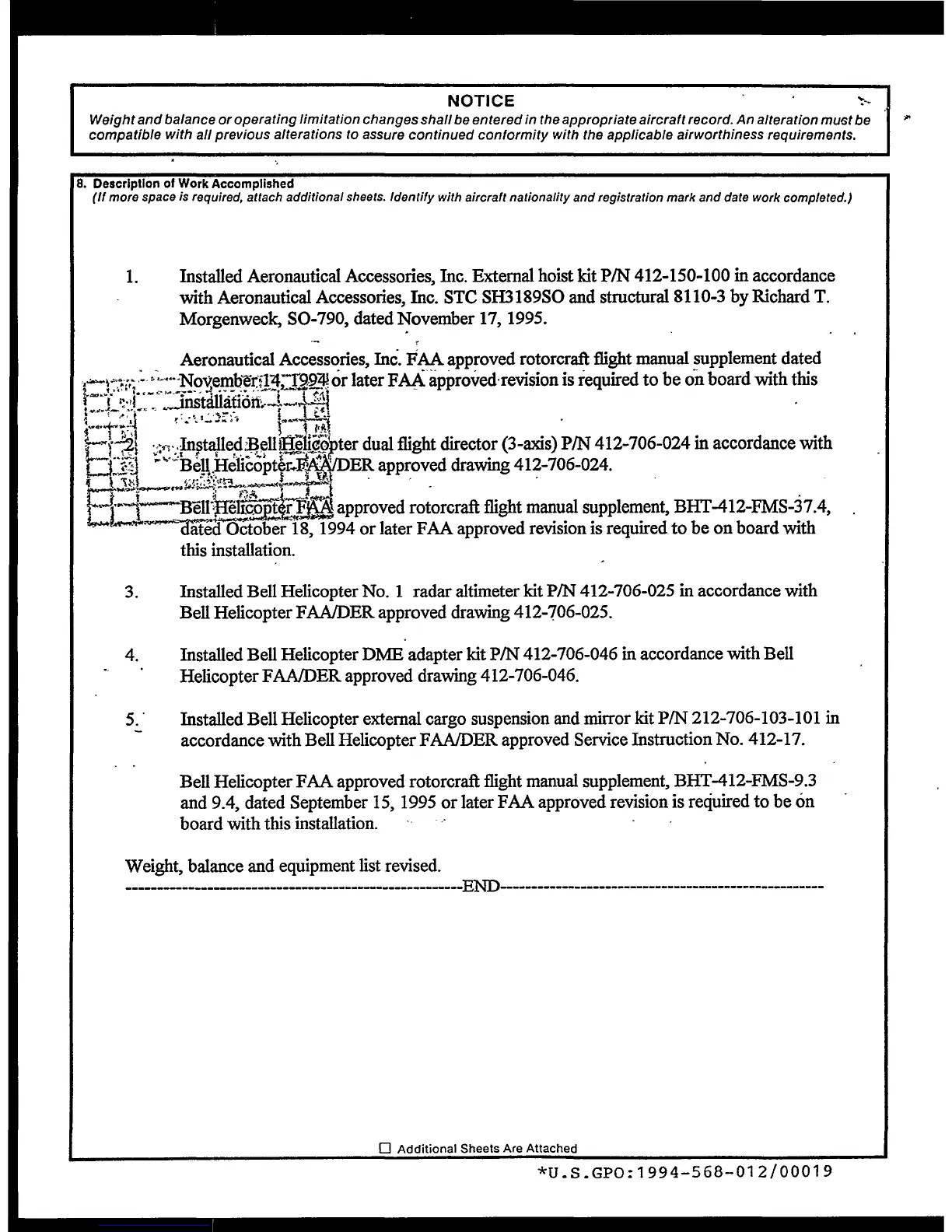 Helicopter FAA/DER approved drawing 412-706-046.