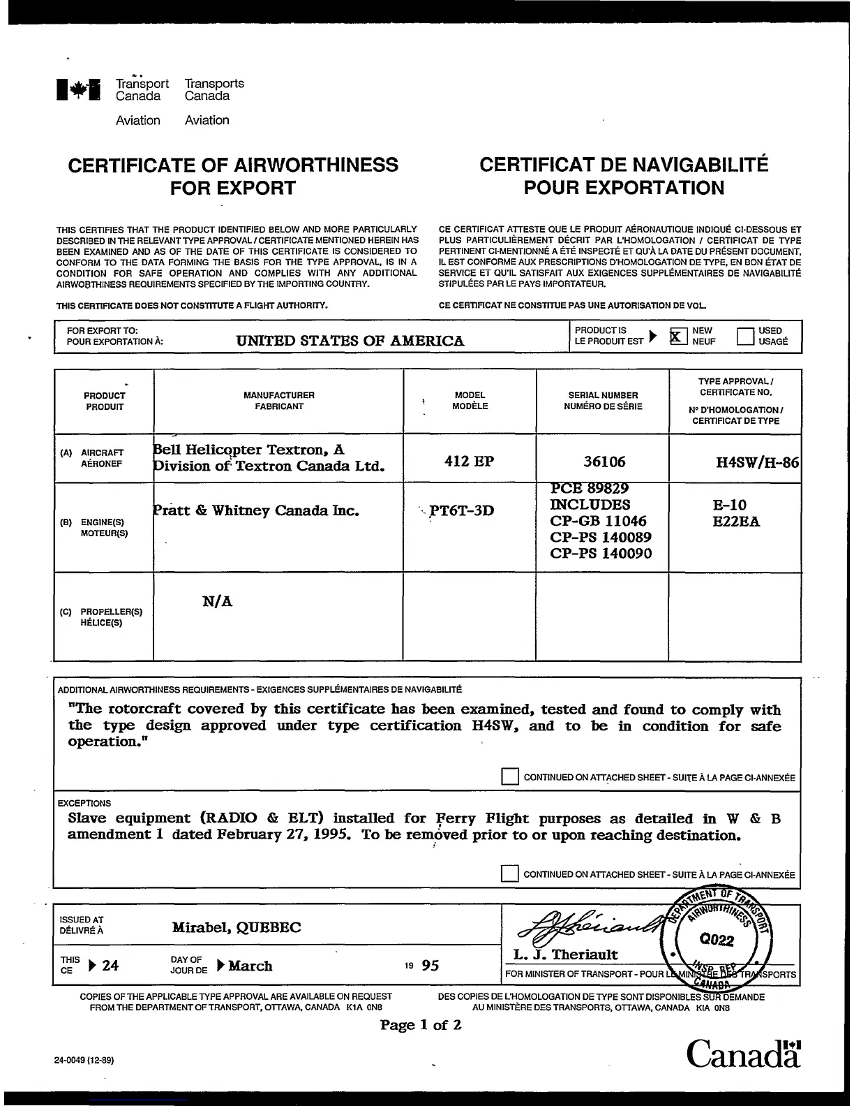 ADDITIONAL AIRWORTHINESS REQUIREMENTS- EXIGENCES SUPPLEMENTAIRES DE NAVIGABILITE