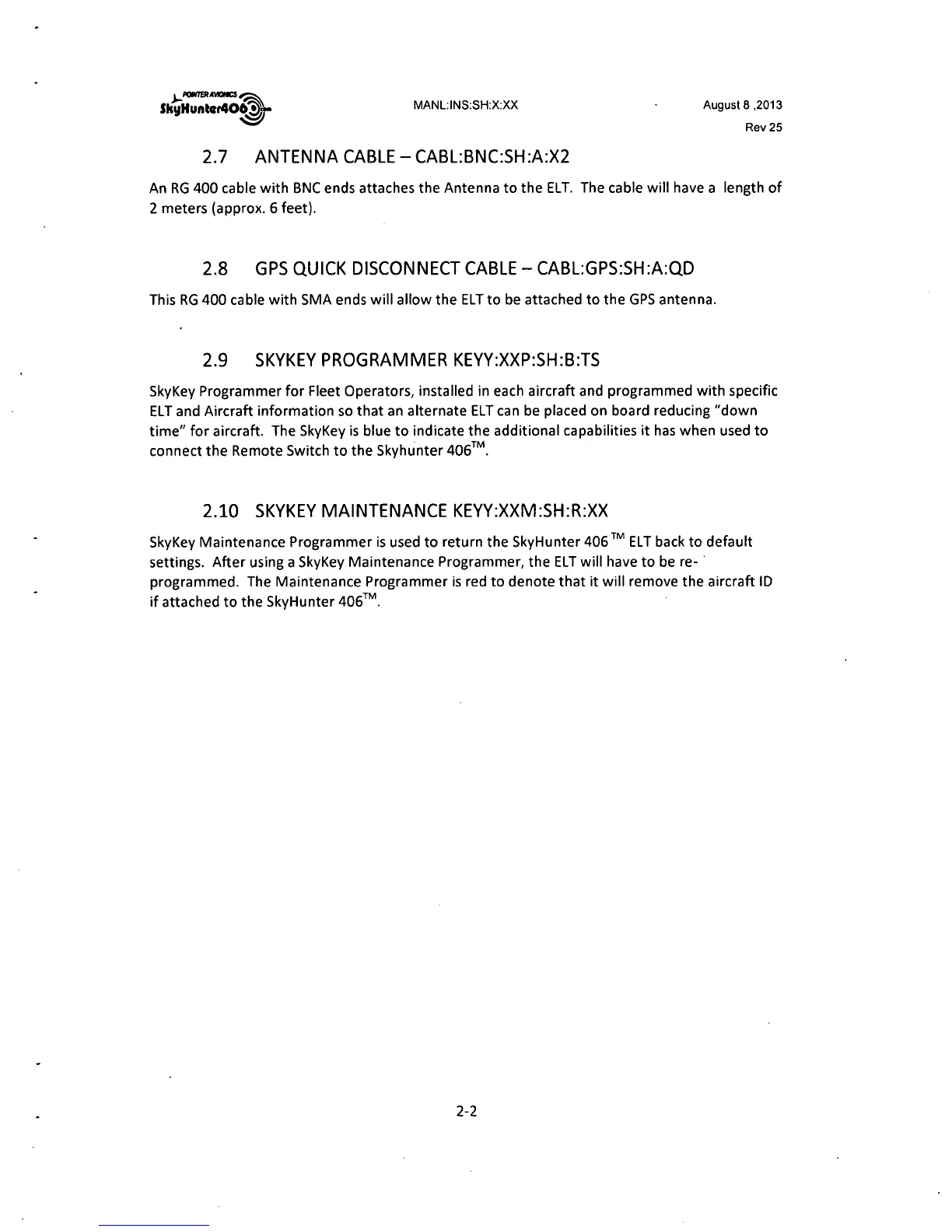 SkyKey Maintenance Programmer is used to return the SkyHunter 406 ™ ElT back to default