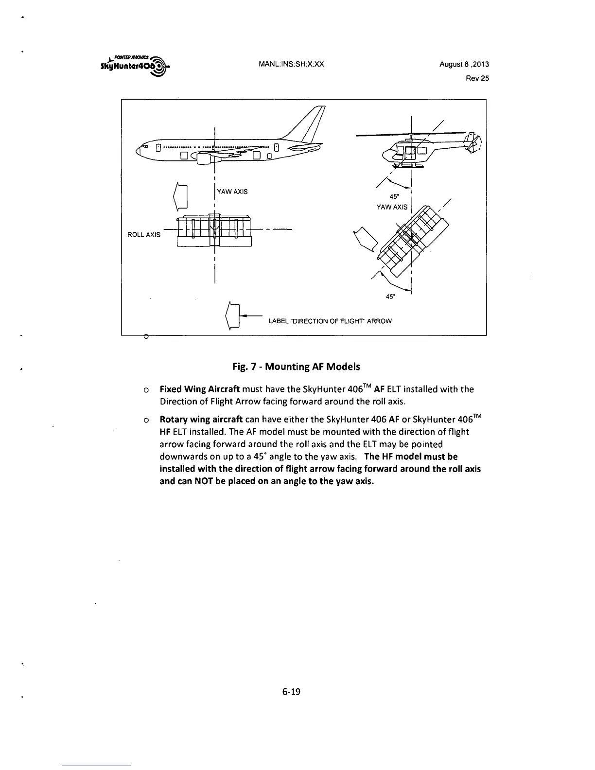 o Fixed Wing Aircraft must have the SkyHunter 406™ AF ELT installed with the