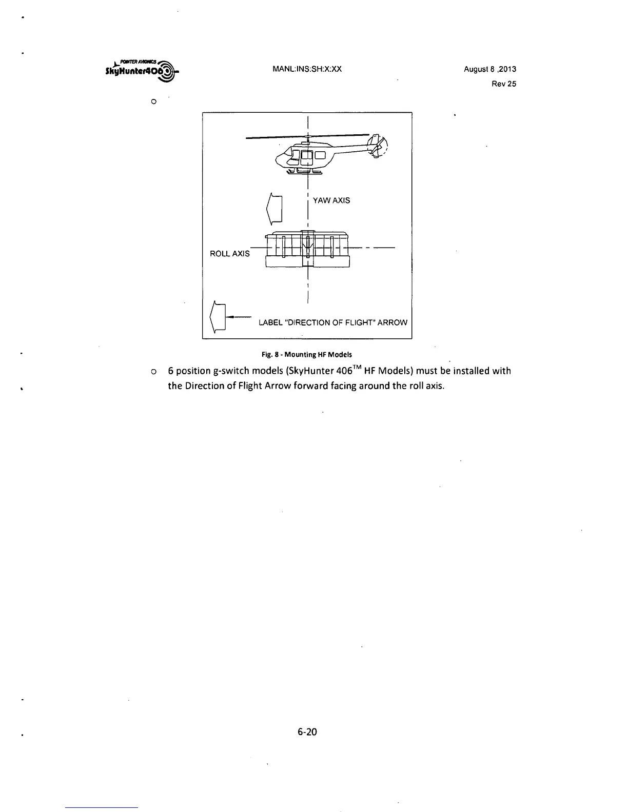 o 6 position g-switch models (SkyHunter 406™ HF Models) must be installed with