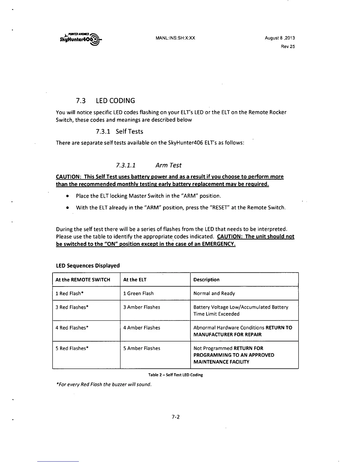 You will notice specific LED codes flashing on your EL T's LED or the ELT on the Remote Rocker