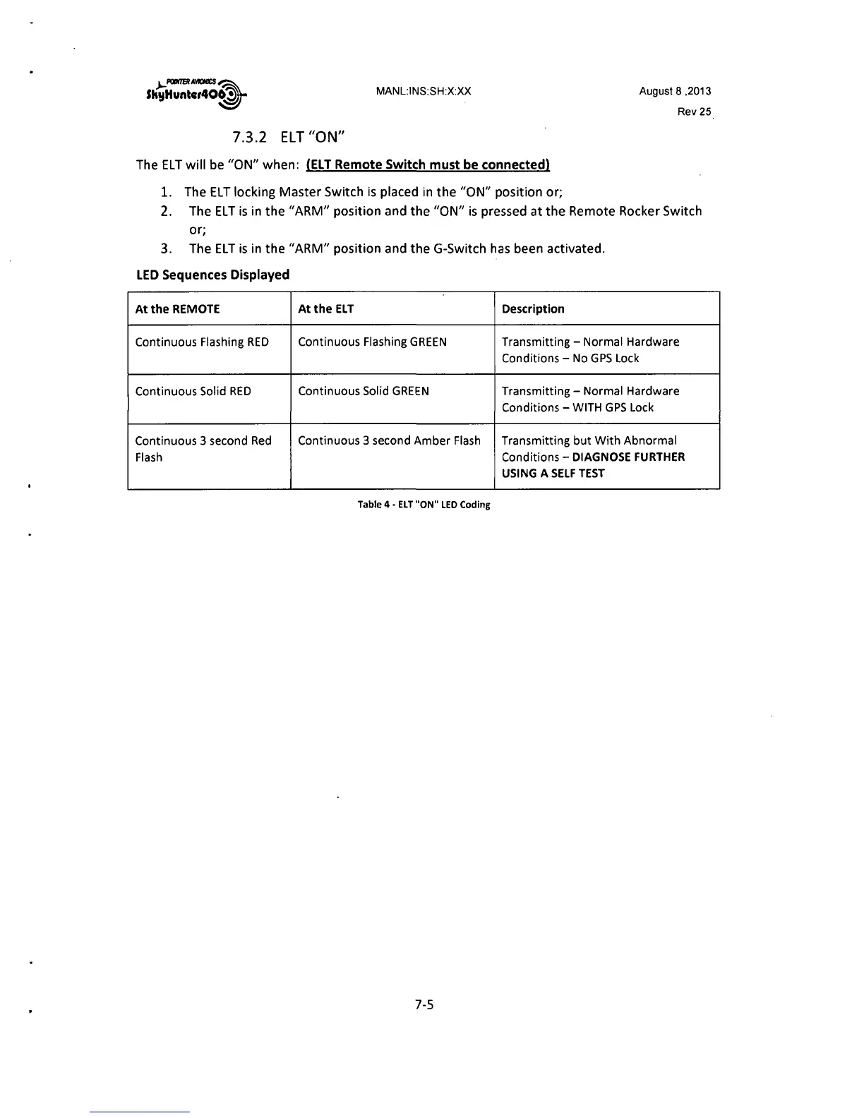 The ELT will be "ON" when: (ELT Remote Switch must be connected)