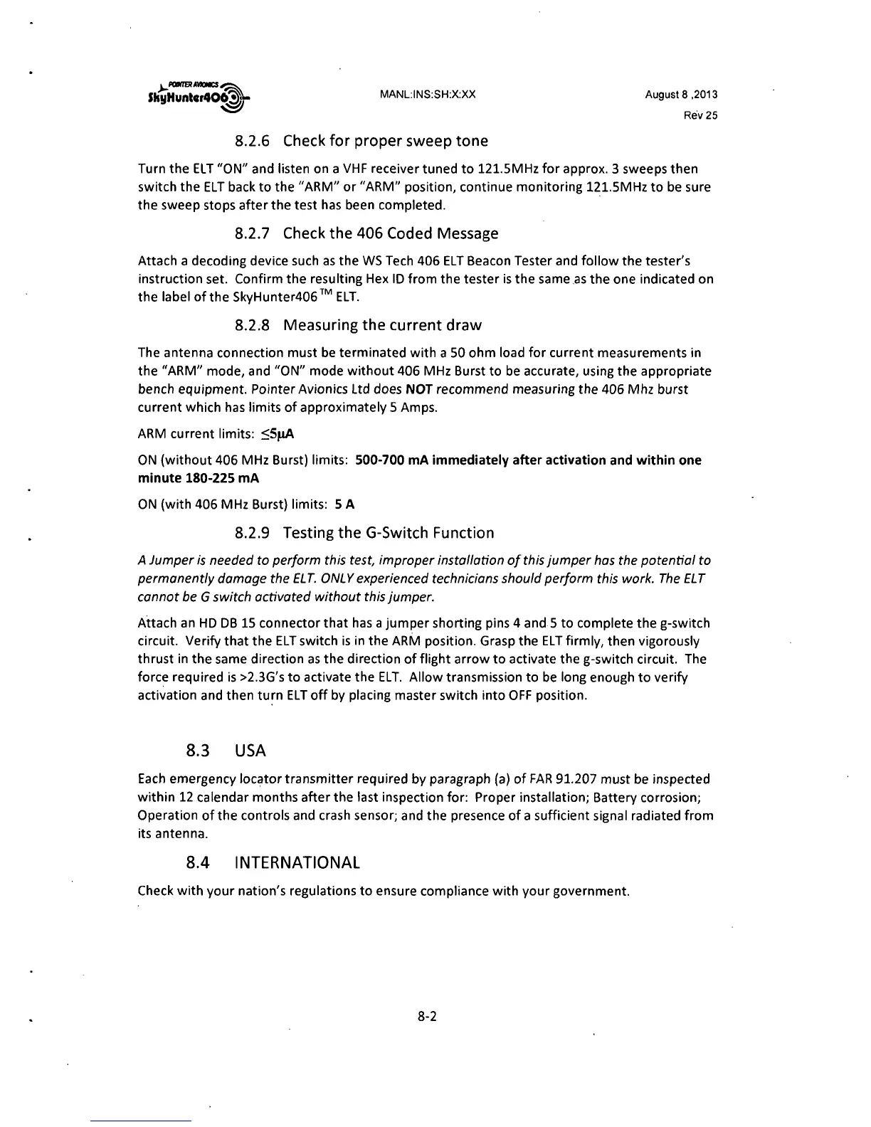 bench equipment. Pointer Avionics Ltd does NOT recommend measuring the 406 Mhz burst