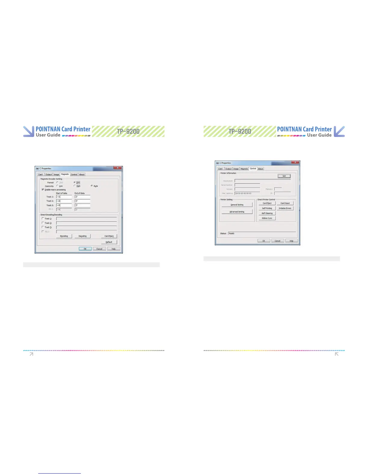 - Card Eject, Ejects a card when the card remains inside the printer