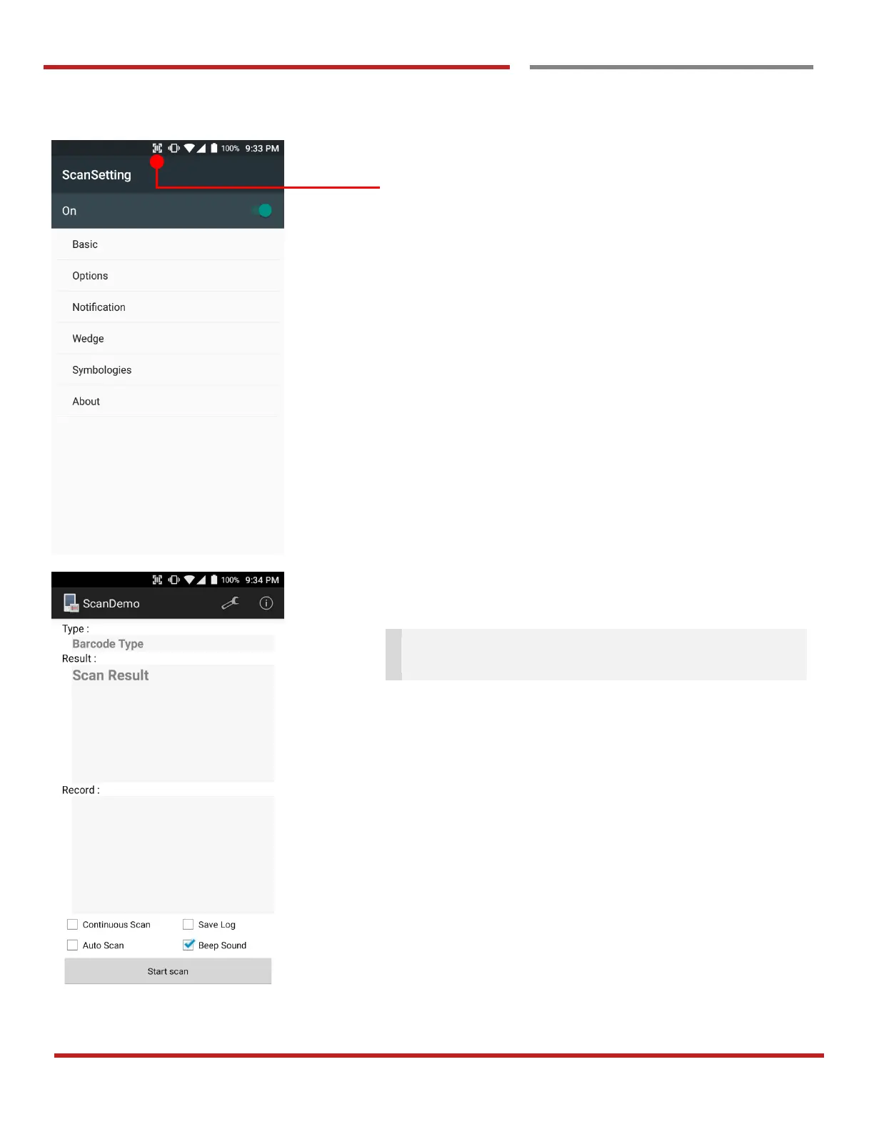 POINTMOBILE DOT-PM80 - Scanner Status Bar Icon; ScanDemo Application