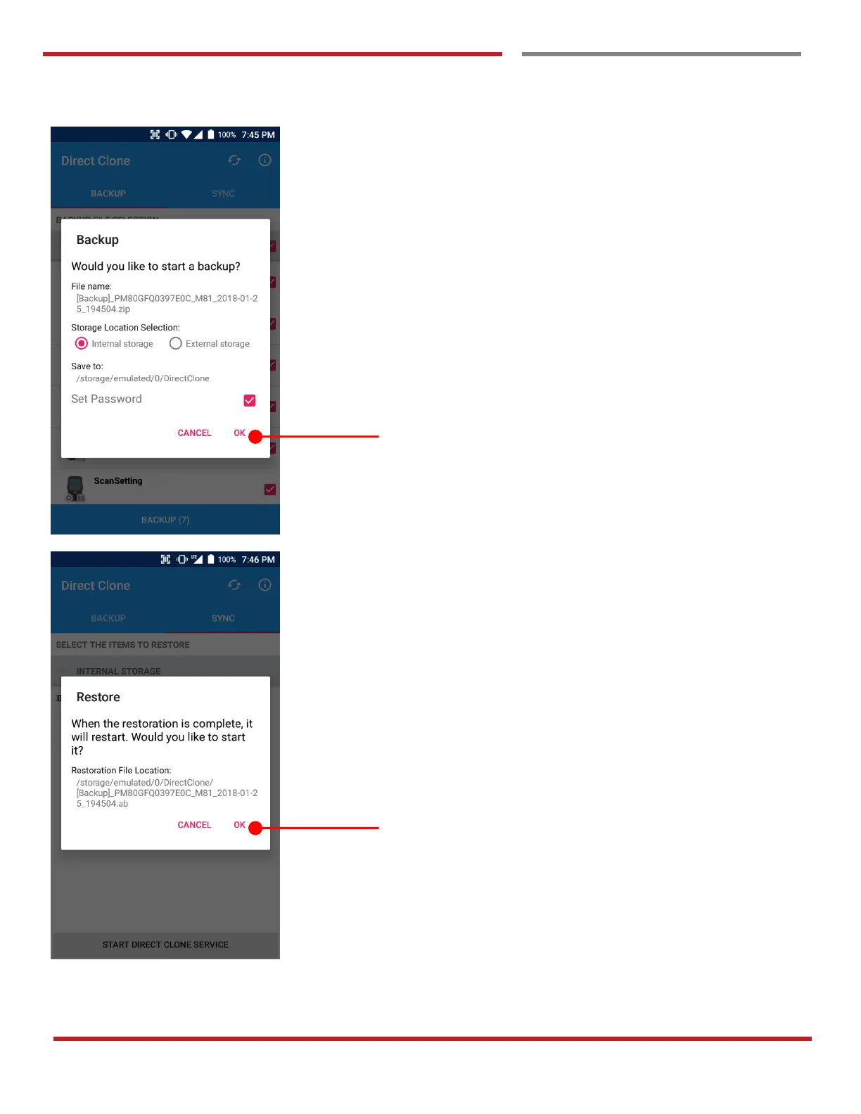 Backed up file will restore your Point Mobile Android device.