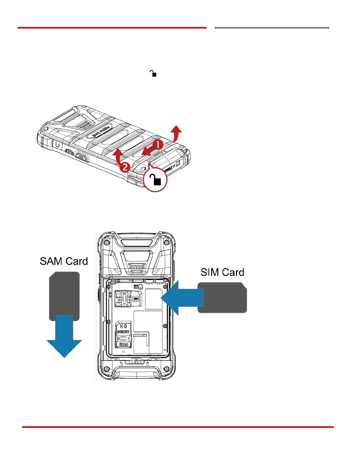 1. Insert the SIM card and SAM card (Optional) into the each slot. (Gold contact should face down)