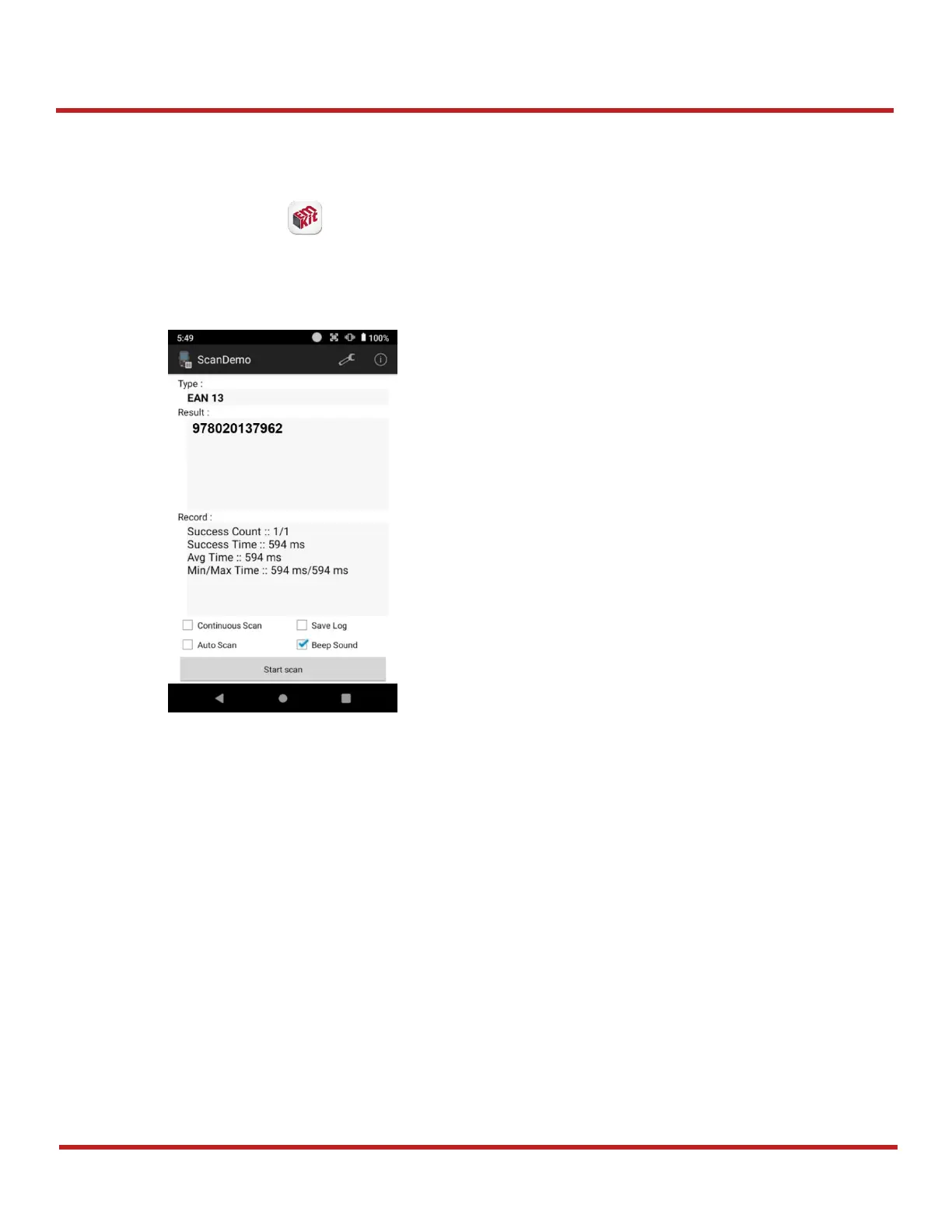 After turning on the scanner, you can test the scan feature with ScanDemo.