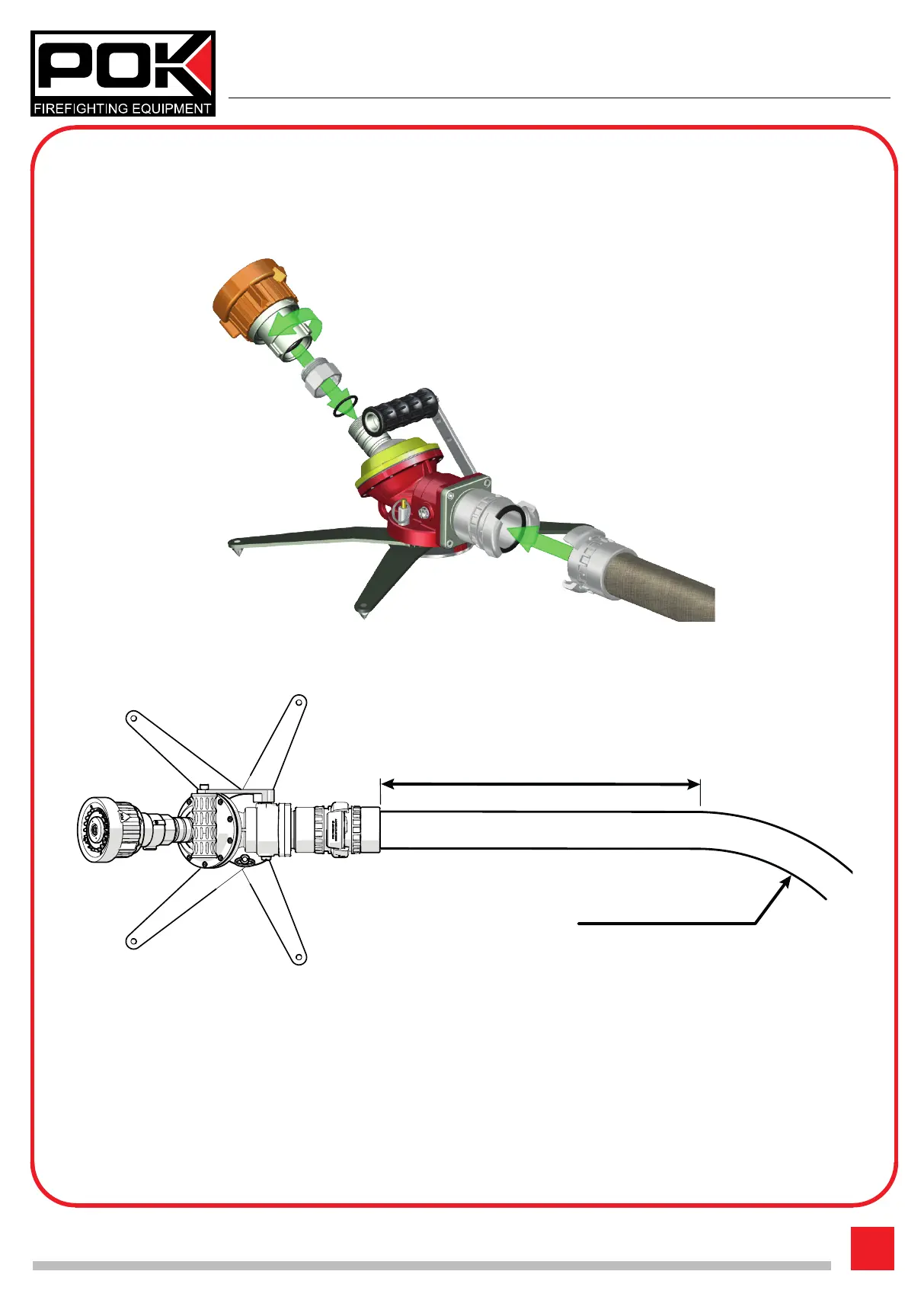 - 1 - Connect the diuser or branchpipe (not inclued with monitor) on the outlet tting and connect the hose