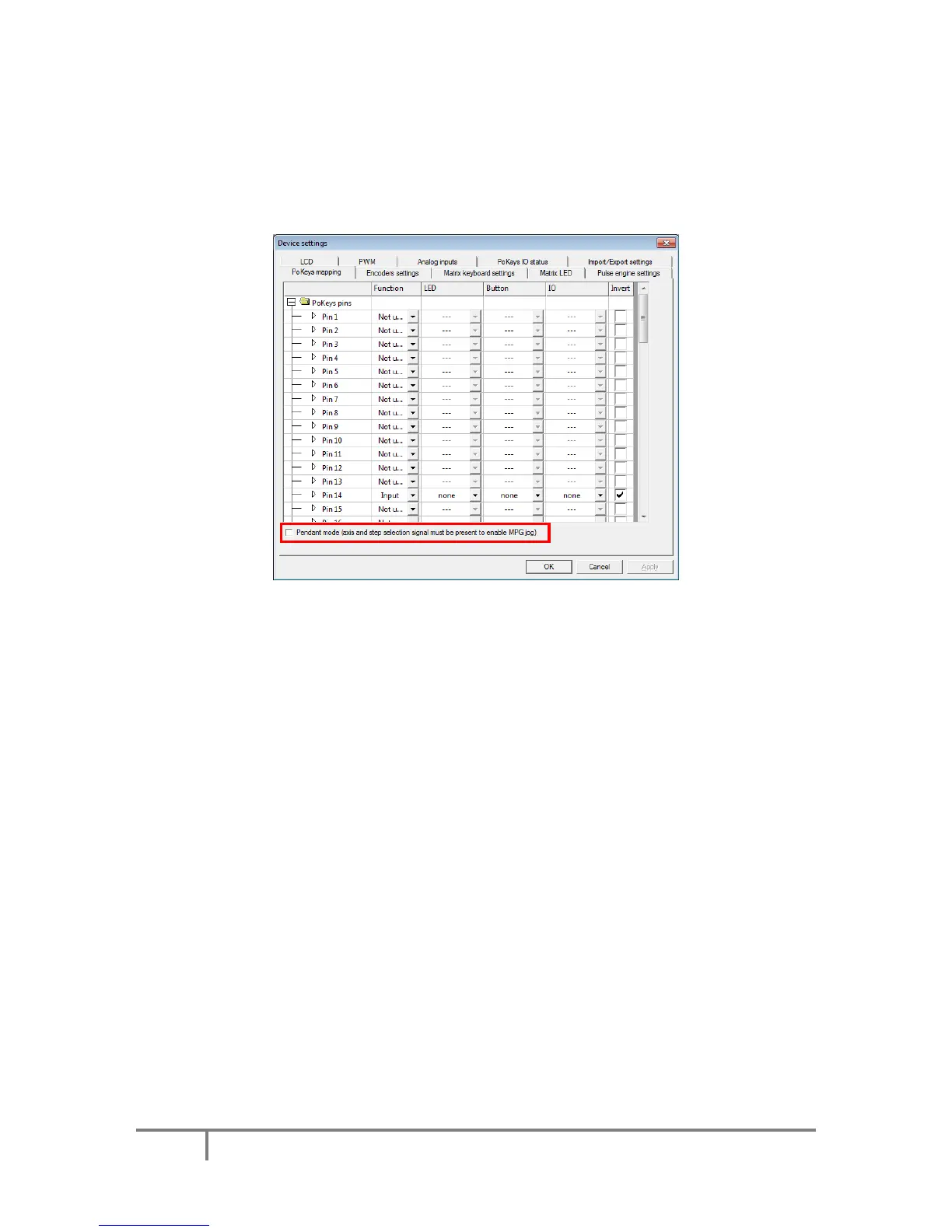 Plugin supports the usage of pendant with activation switch. If such pendant is connected to PoKeys,