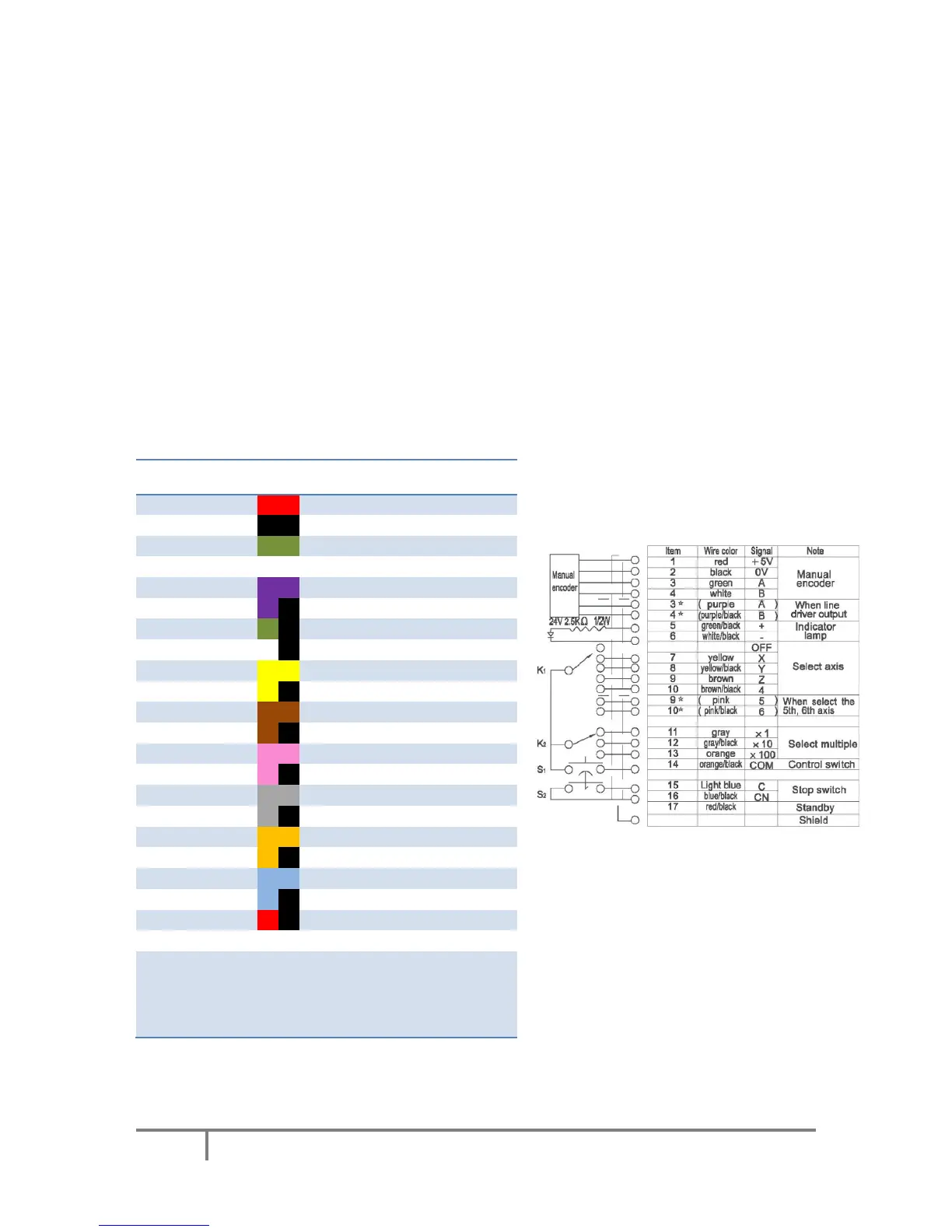 Note: the following table only gives an example on how to connect the PoPendant to PoKeys