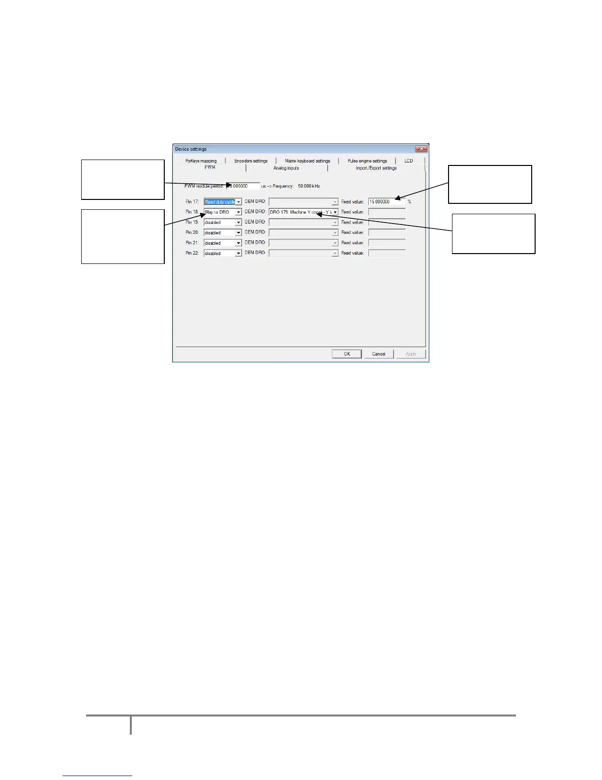 in %) or assigned a fixed value (PWM period in microseconds or in %).