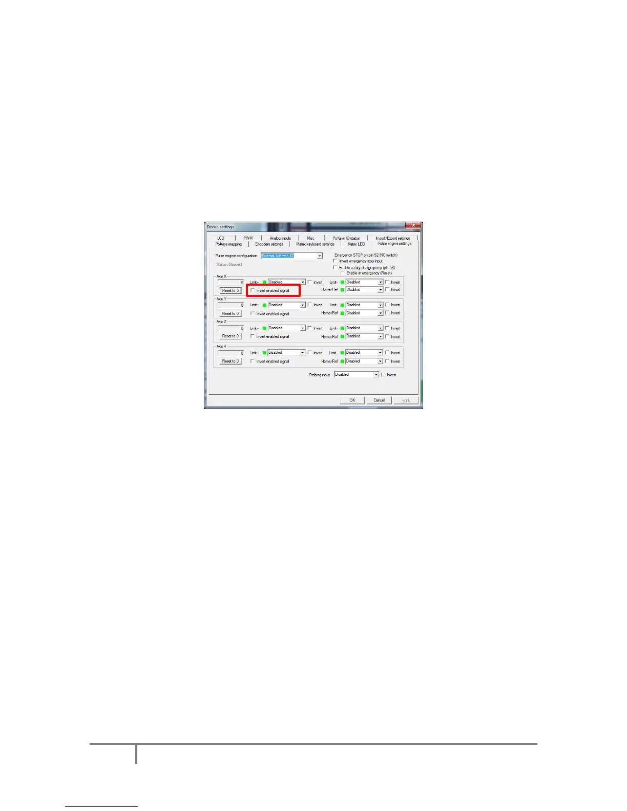 expect active high signal. Since PoKeys is not a LPT port extension, the Mach3's Ports & Pins is not