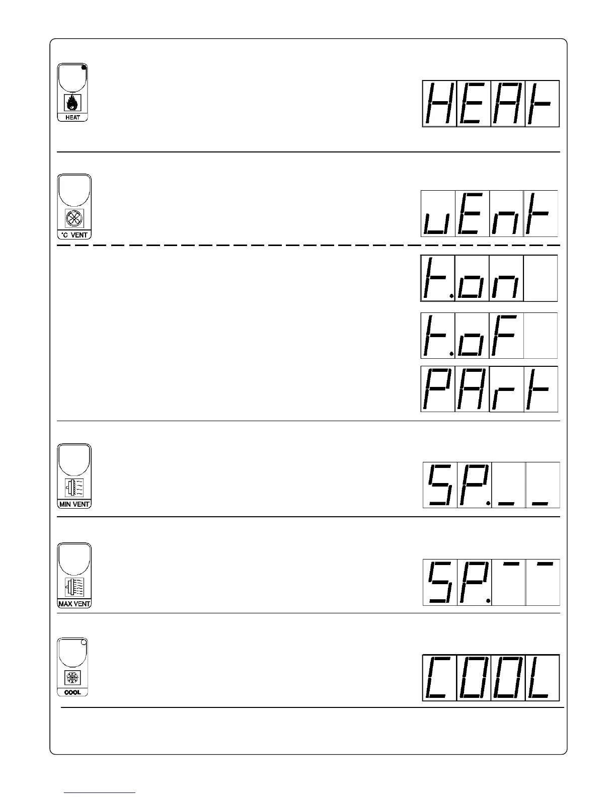 Press + or - to modify, press MAX VENT to exit.