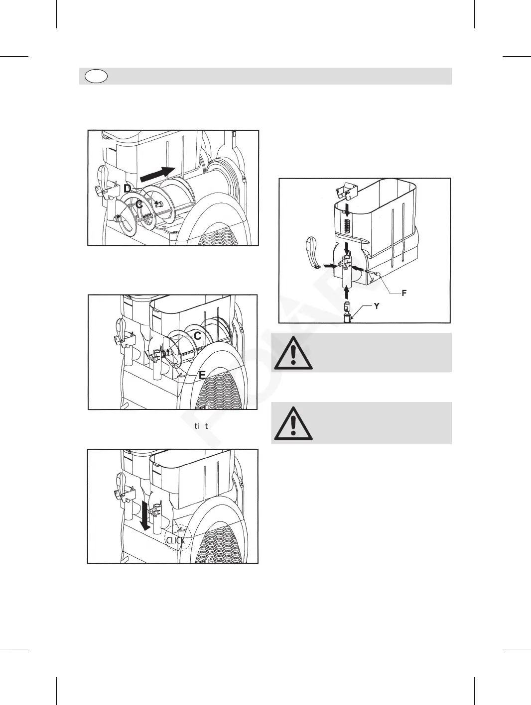 • Introduce the pin (F) while keeping the