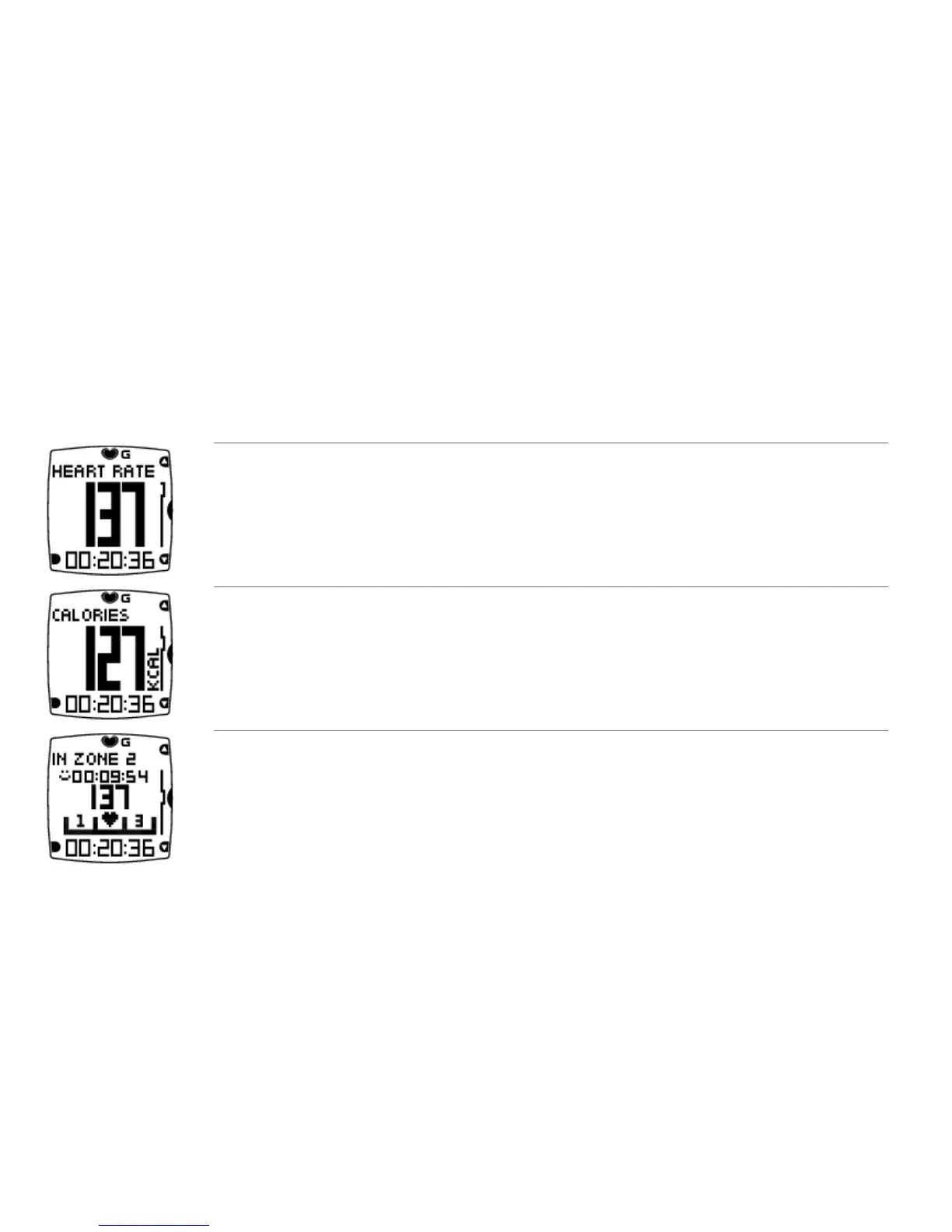 If your heart rate is not within the zones, NOT IN ZONE is displayed.